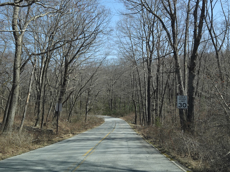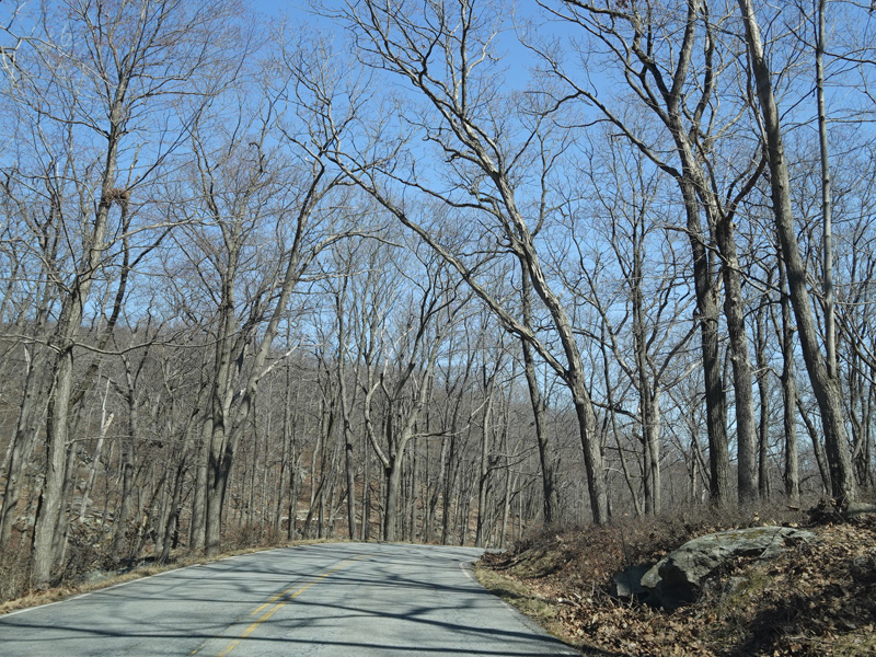 Tiorati Brook Road runs east through Harriman State Park as a two-lane undivided road.