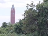 This picture shows the obelisk before work was done to rehabilitate it. The top, which is made of copper, appeared green at the time due to oxidation, similar to the Statue of Liberty. It has been replaced and, at least for now, has its original copper color again.