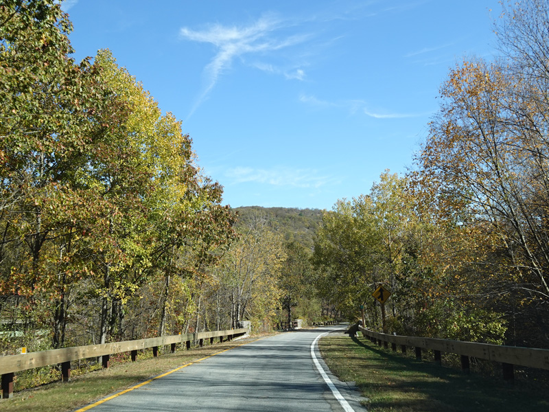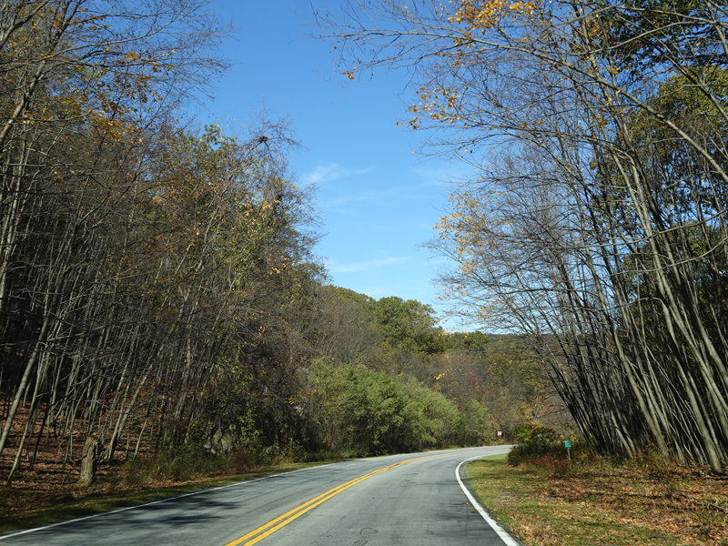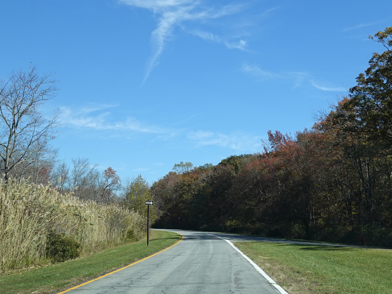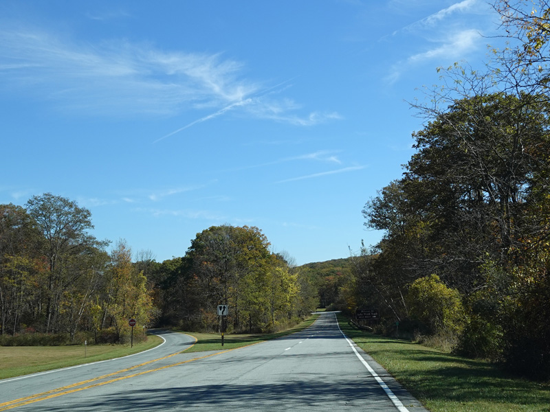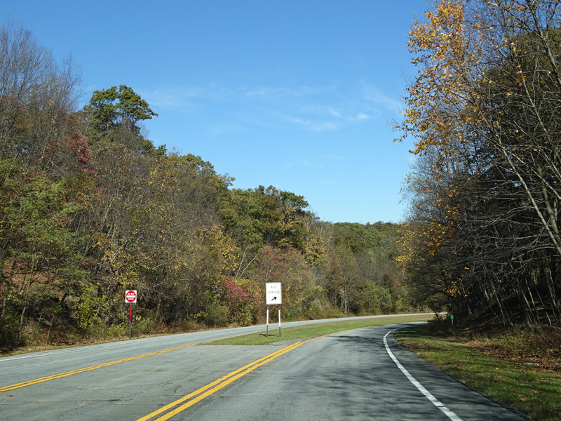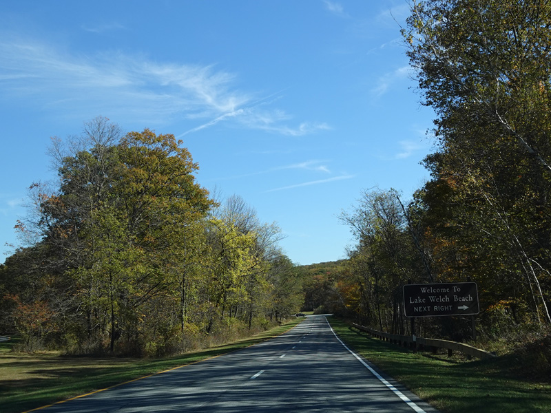 Lake Welch Drive ends here, merging into the southbound side of the Palisades Parkway. Motorists wishing to go north must continue to the new exit and turn around.
