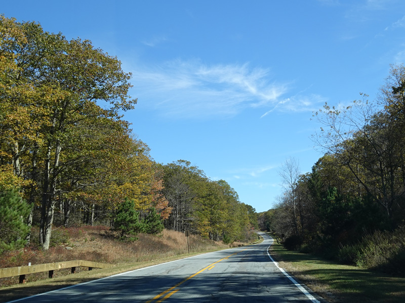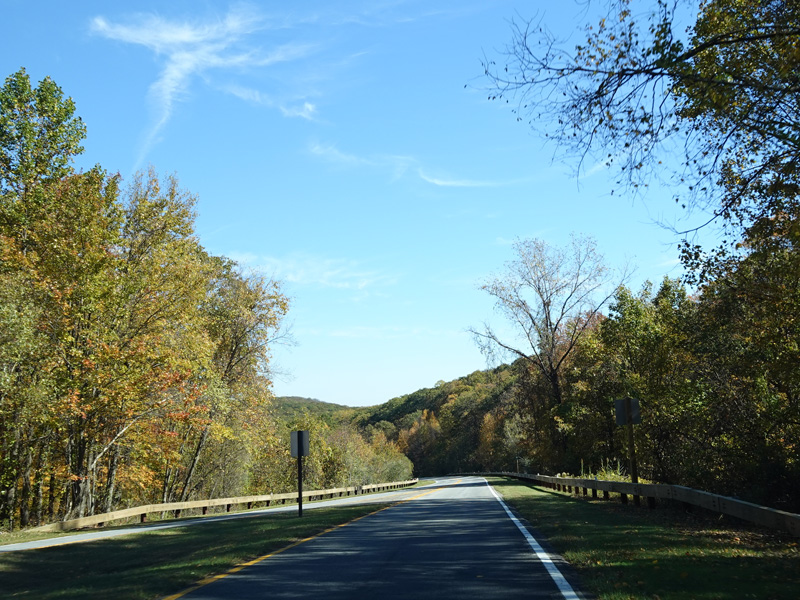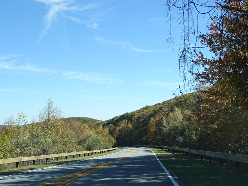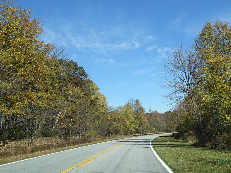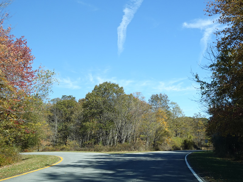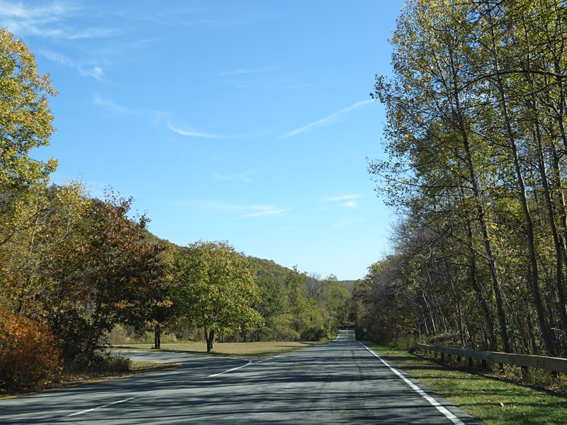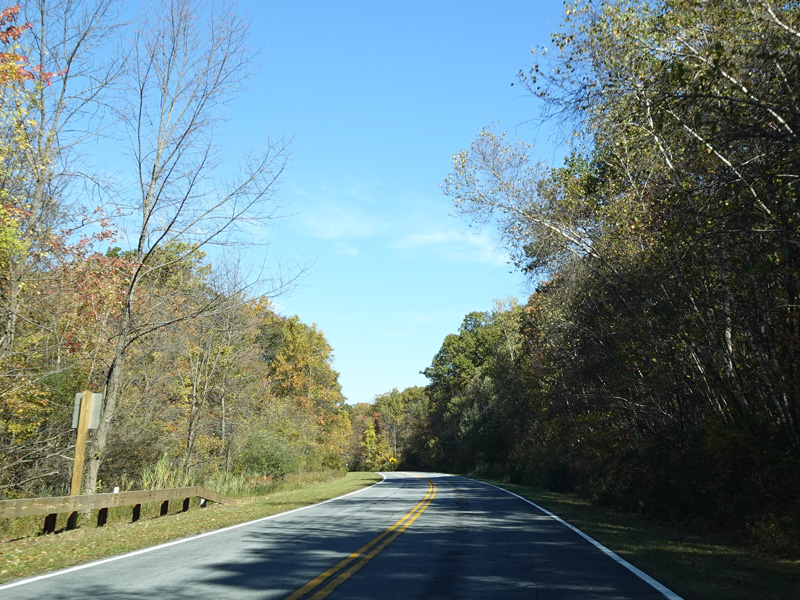 Lake Welch Drive ends here, merging into the southbound side of the Palisades Parkway. Motorists wishing to go north must continue to the new exit and turn around.