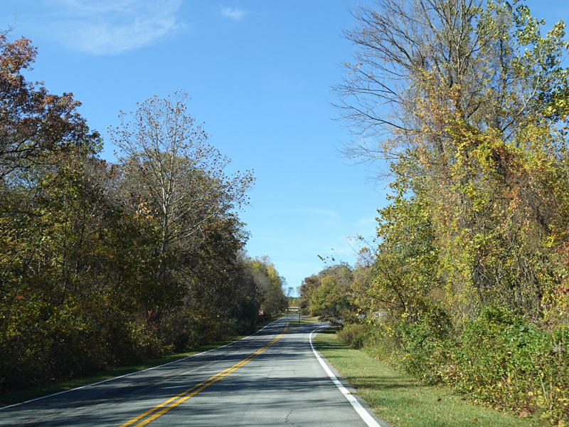 Lake Welch Drive begins at the Palisades Parkway. At first, it is a two-lane undivided road.