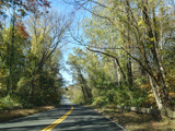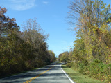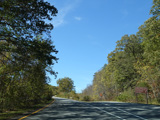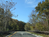 Lake Welch Drive widens to become a divided highway with a grass median. A second lane merges in on the right from the southbound side of the Palisades Parkway. Then, the roadway splits. Use the right lane for Tiorati Brook Road or the left lane to continue on Lake Welch Drive.