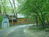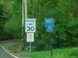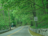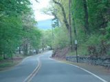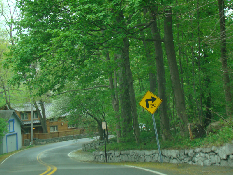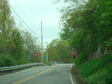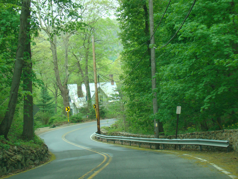Cat Rock Road (NY 403) turns into Lower Station Road upon crossing Bear Mountain-Beacon Highway (NY 9D). Lower Station Road heads downhill toward the Hudson River.