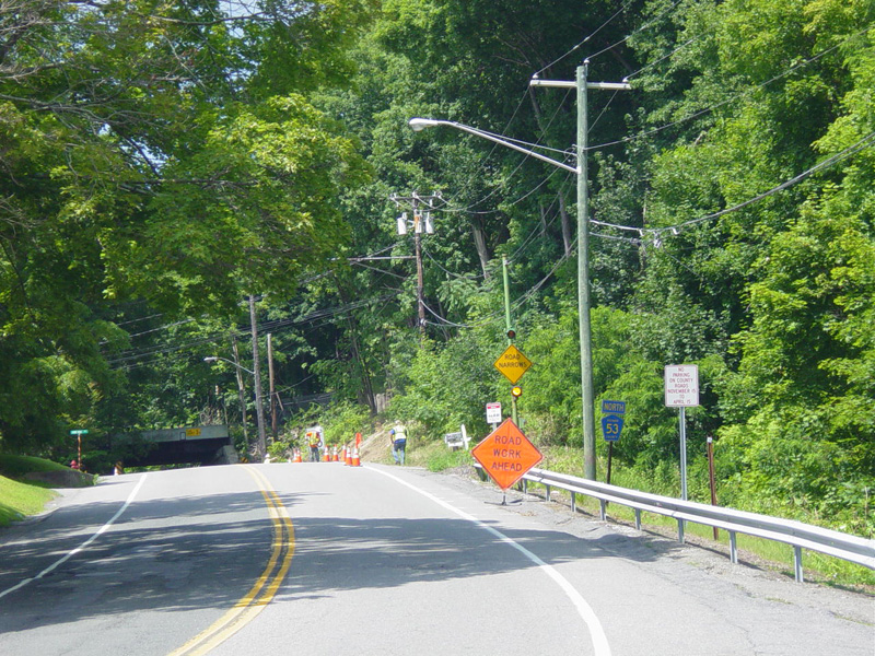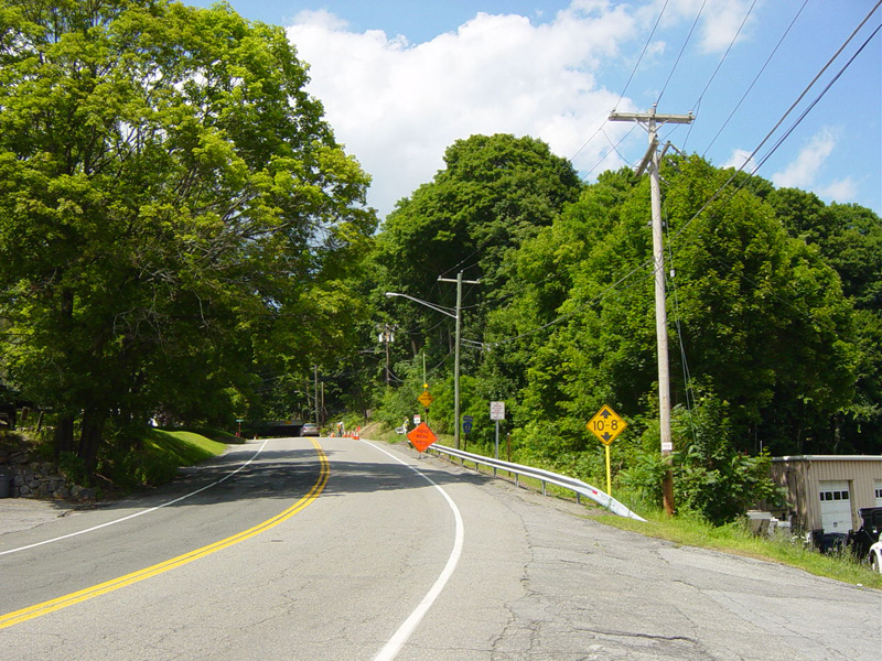 These pictures show the beginning of Peaceable Hill Road as it appeared while construction work was in progress in the area. The reassurance shield has since been removed.