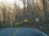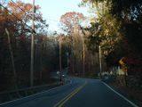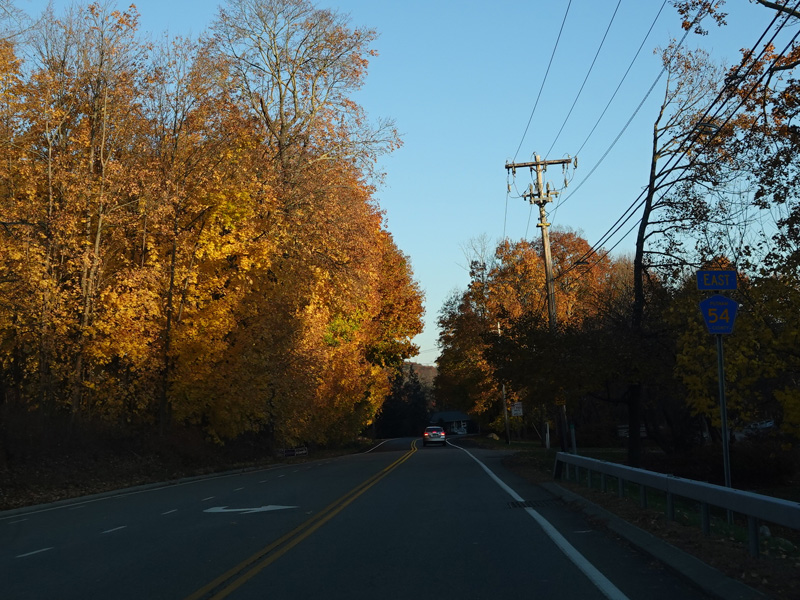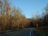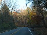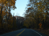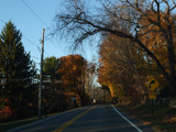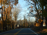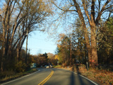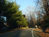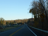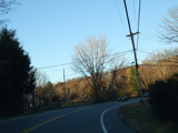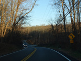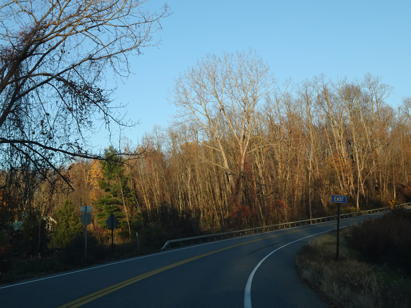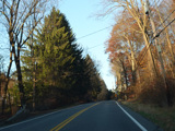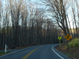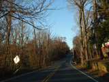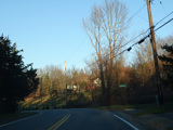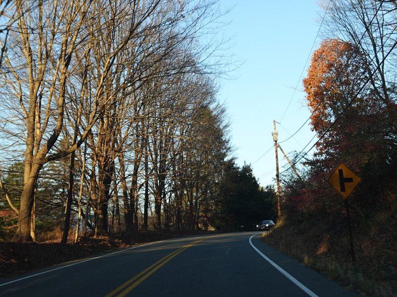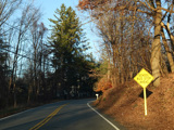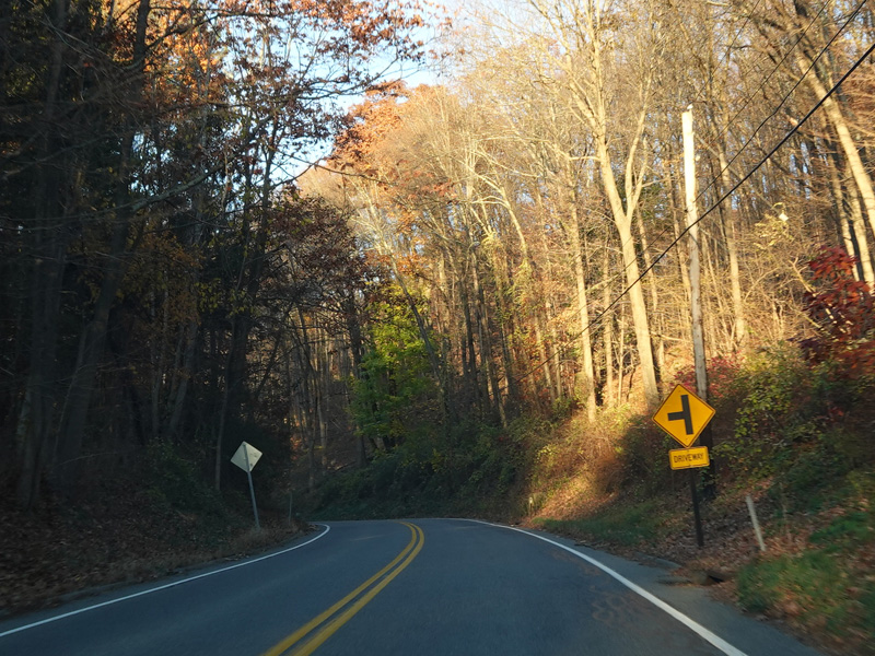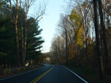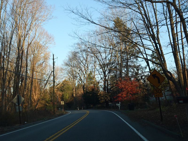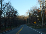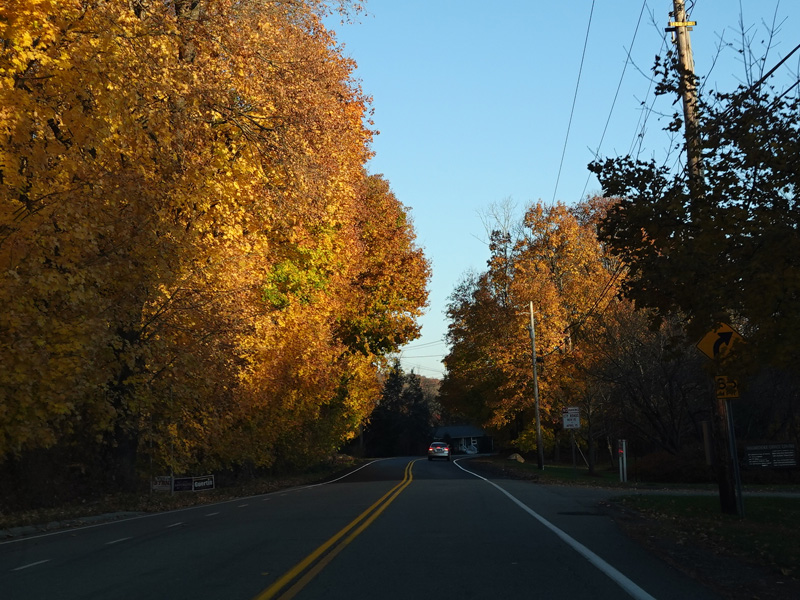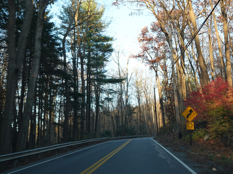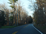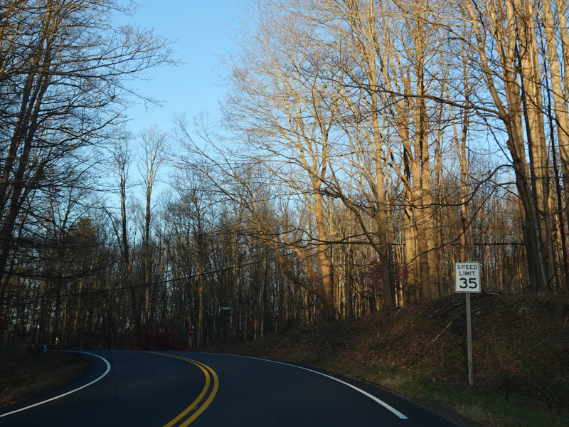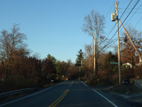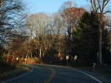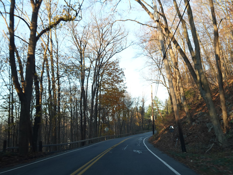 Milltown Road curves to the north and runs along the state line. Here, the left side of the road is New York, and the right side is Connecticut.
