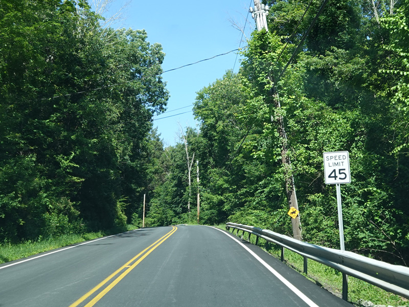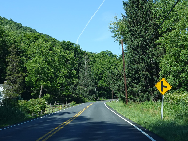 Haviland Hollow Road ends here at the border with Connecticut. Patterson Road (SR 850) is straight ahead.