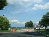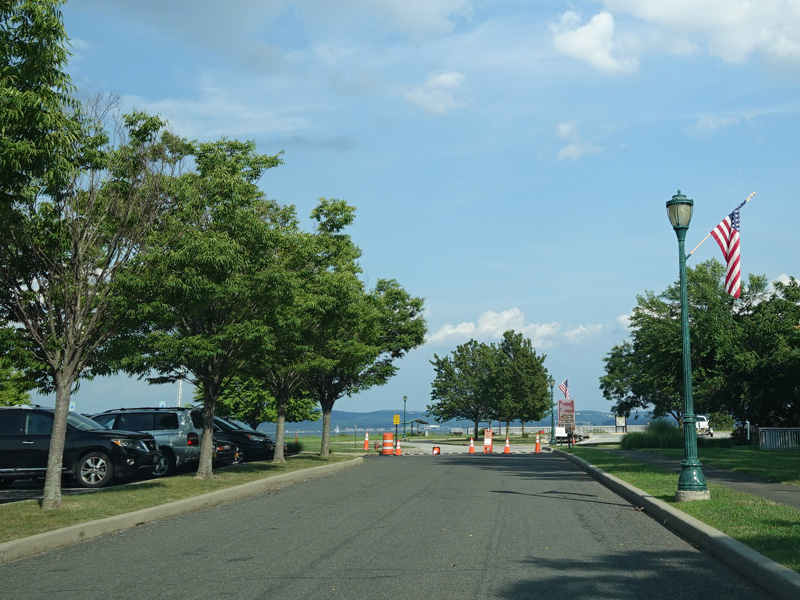 The parking lot for Haverstraw Bay County Park is on the left. The road ends in the park near the Hudson River.