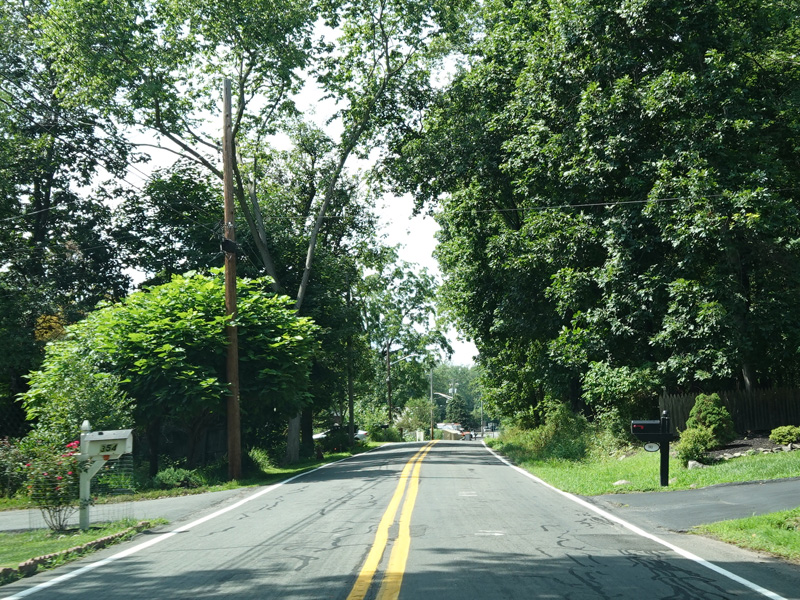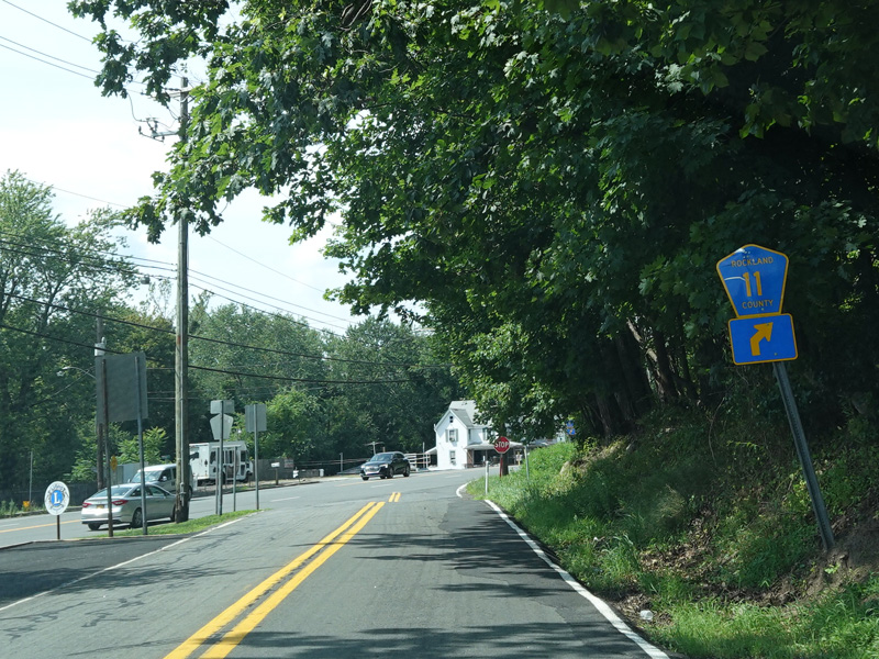 CR 11 ends here as Greenbush Road enters the Town of Clarkstown. Buttermilk Falls Park is on the right just past the northern terminus.