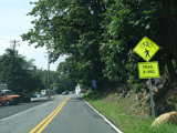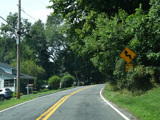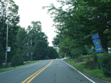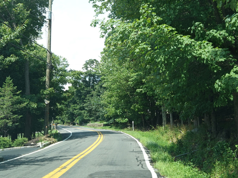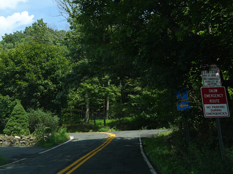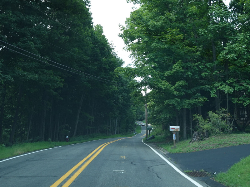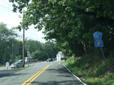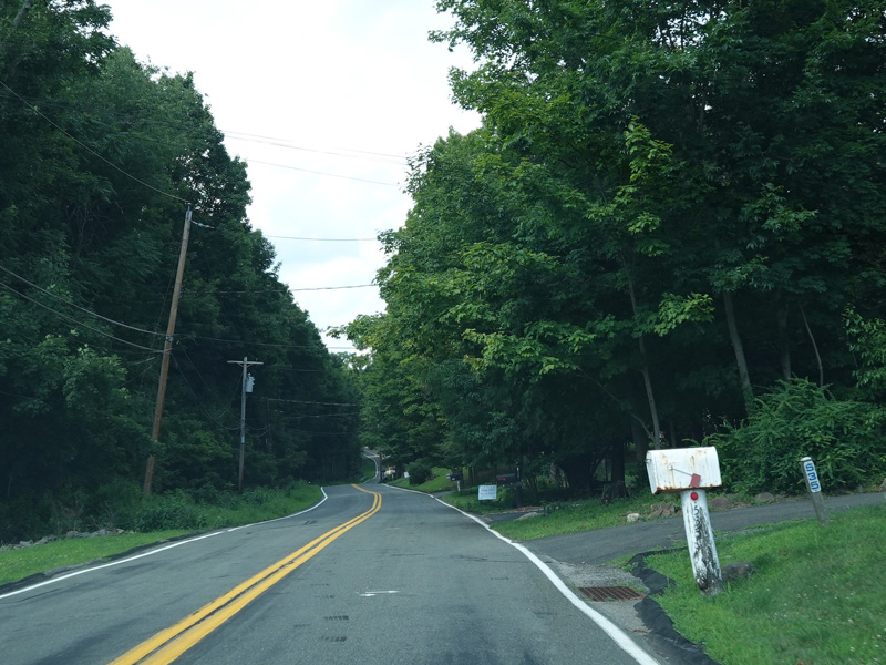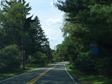 Greenbush Road merges into NY 303 at a stop sign. Merge in straight ahead and then make the first right to continue on Greenbush Road.
