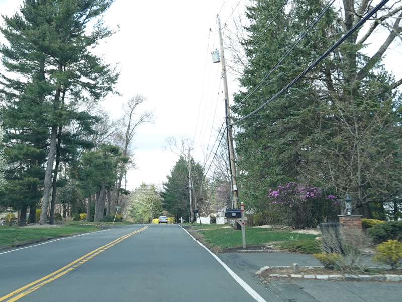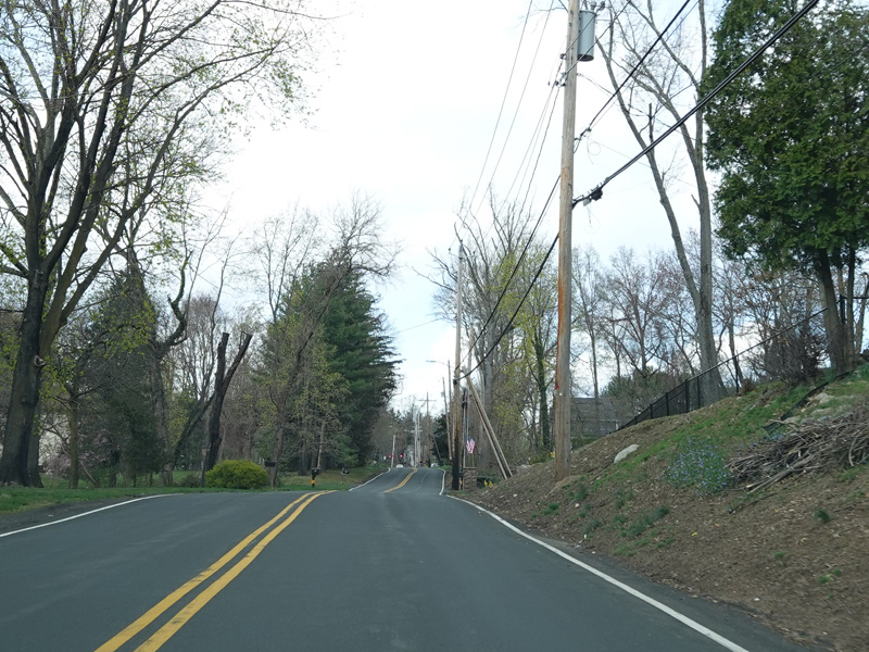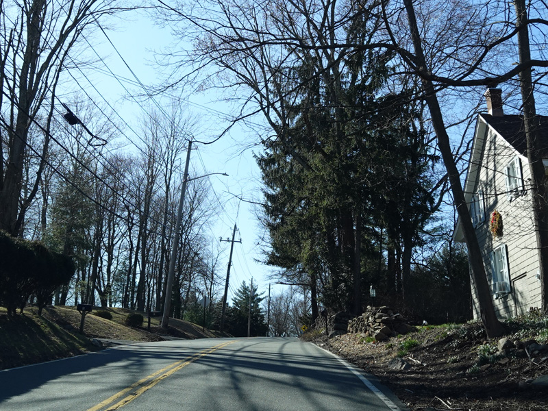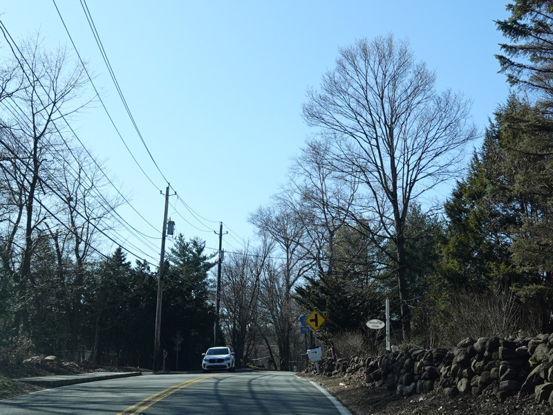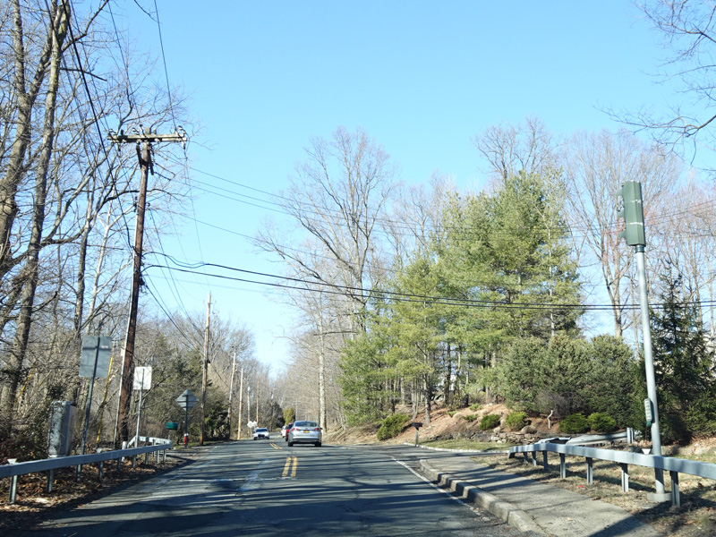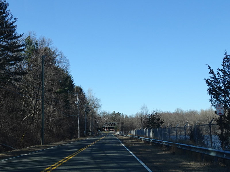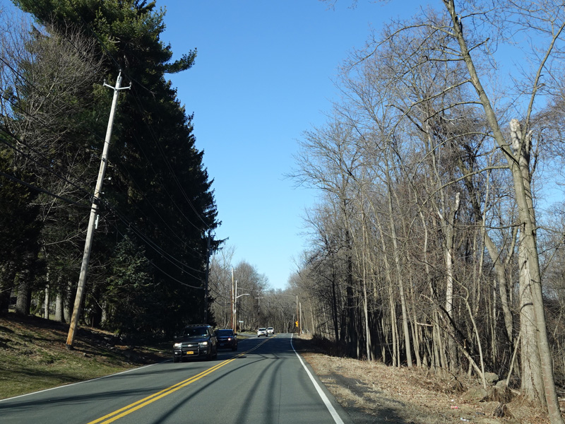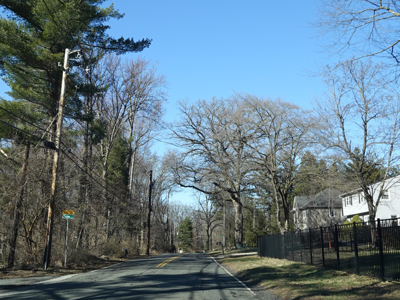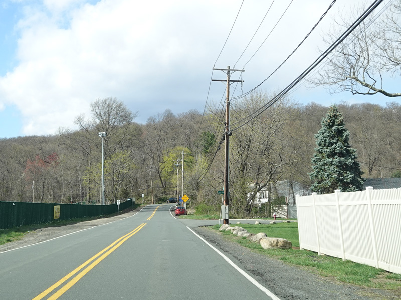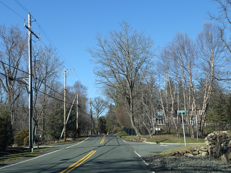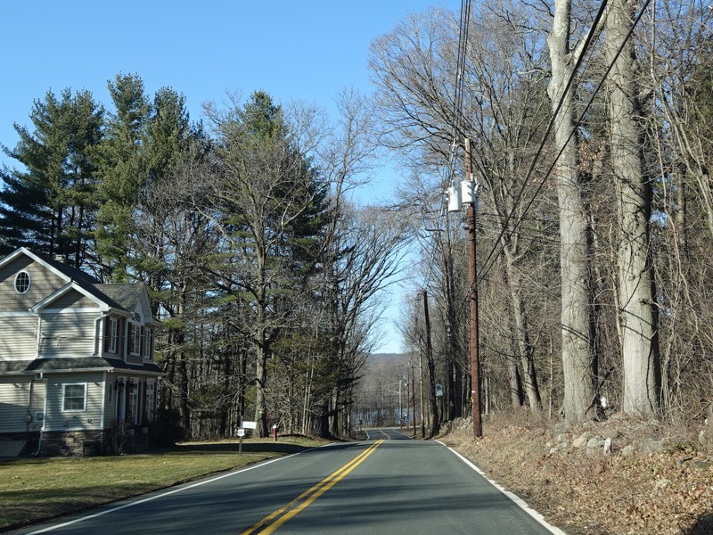 Blue Hill Road runs north as a two-lane undivided road. Once again, Lake Tappan is on the right.