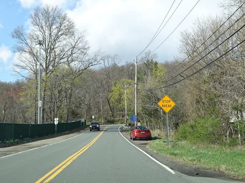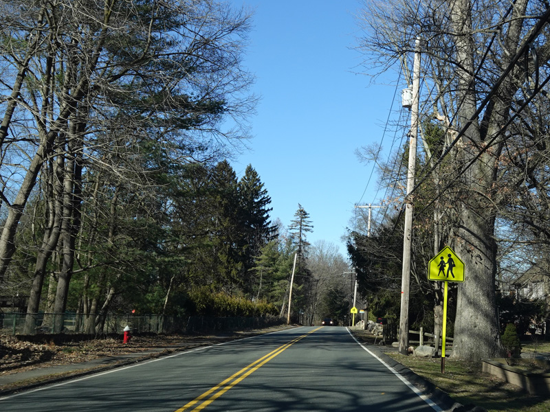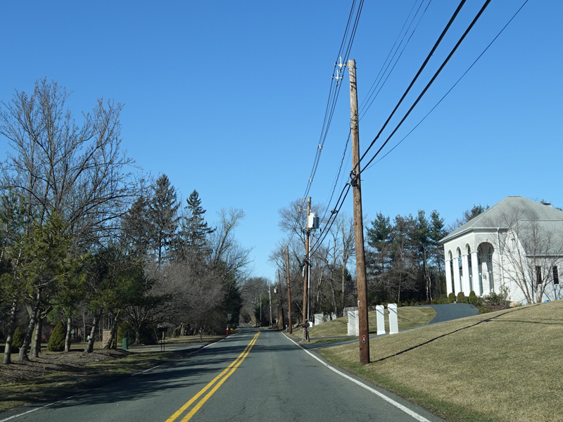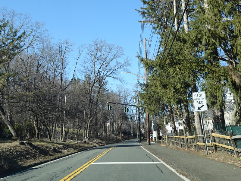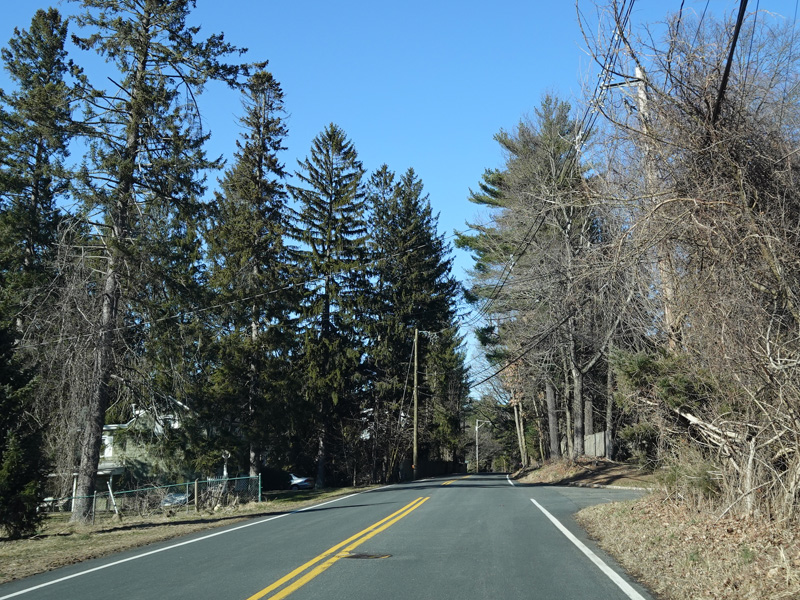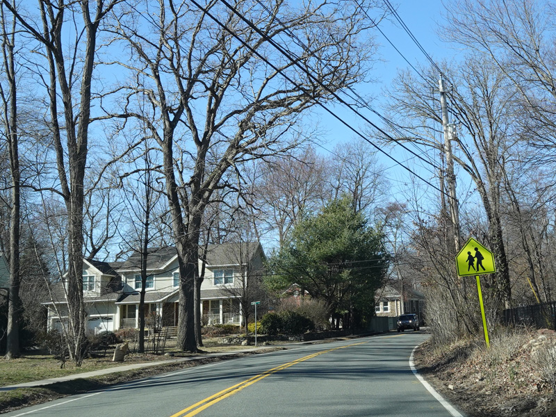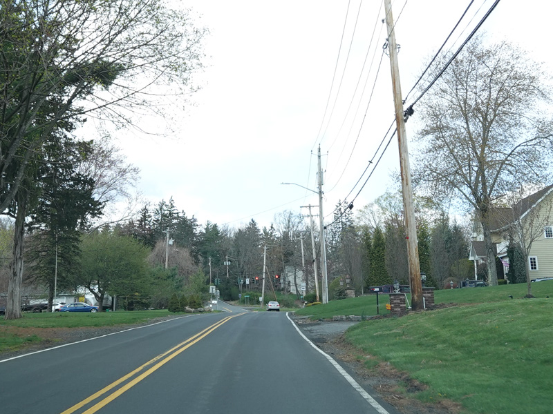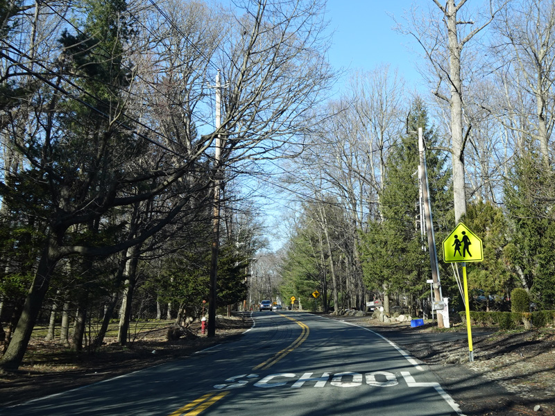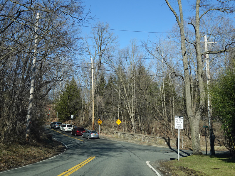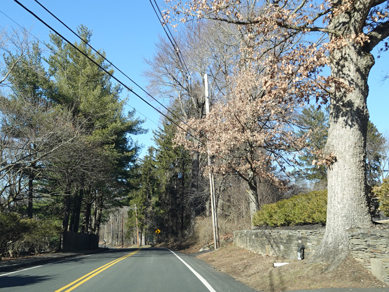 Blue Hill Road runs north as a two-lane undivided road. Once again, Lake Tappan is on the right.