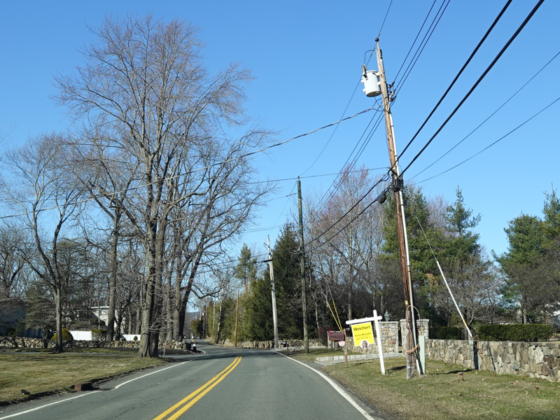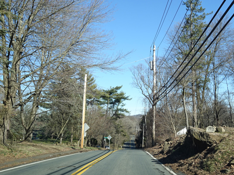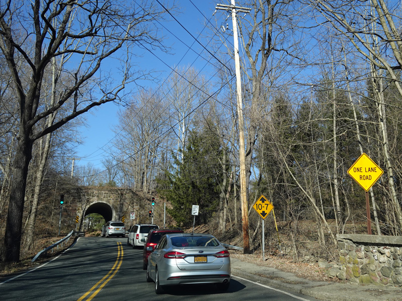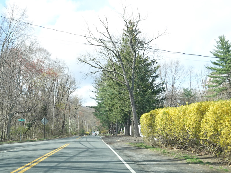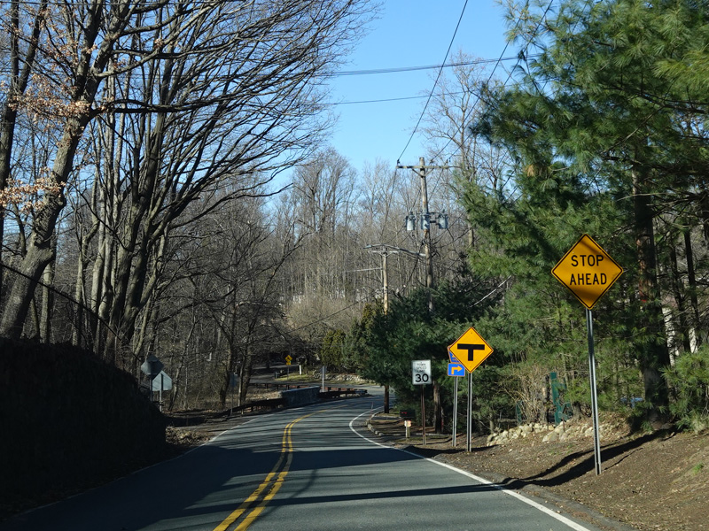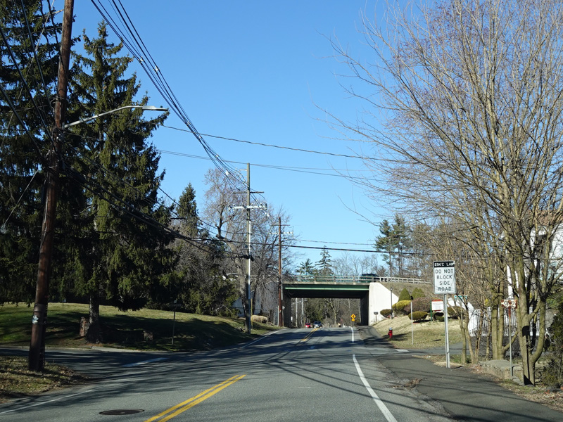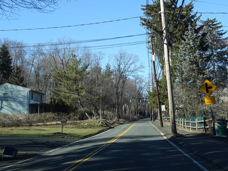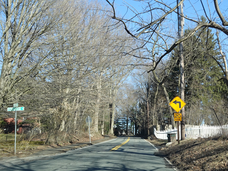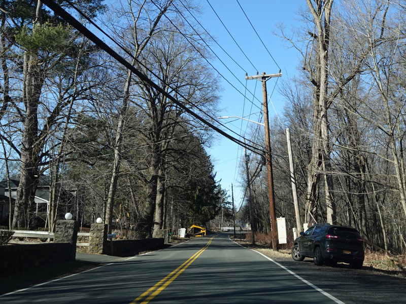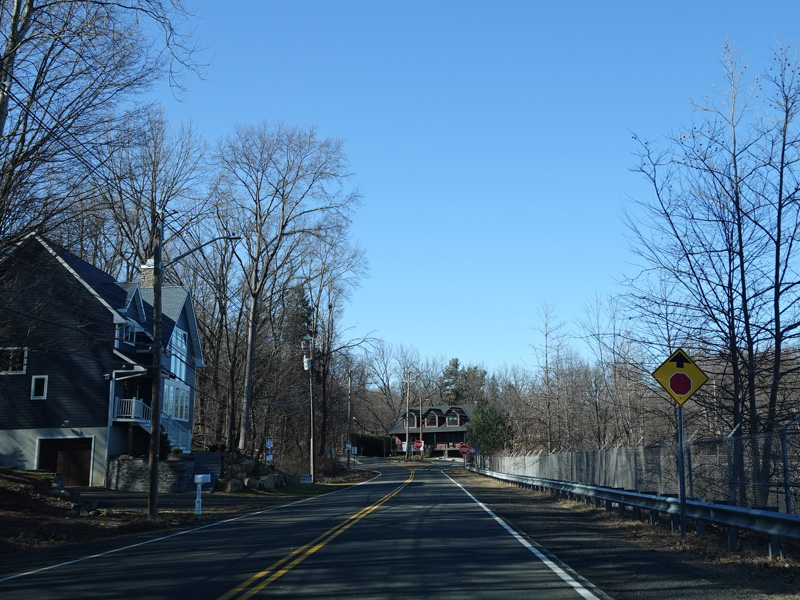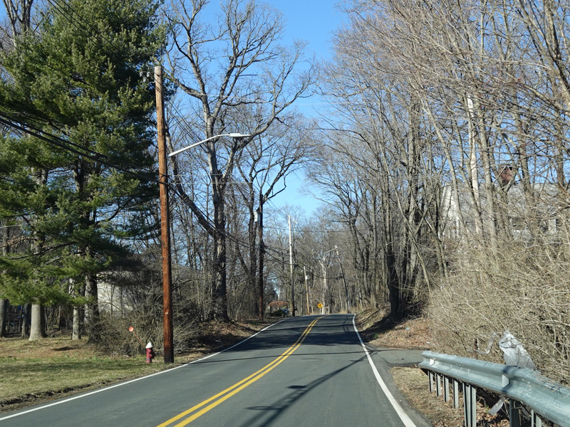 Blue Hill Road runs north as a two-lane undivided road. Once again, Lake Tappan is on the right.