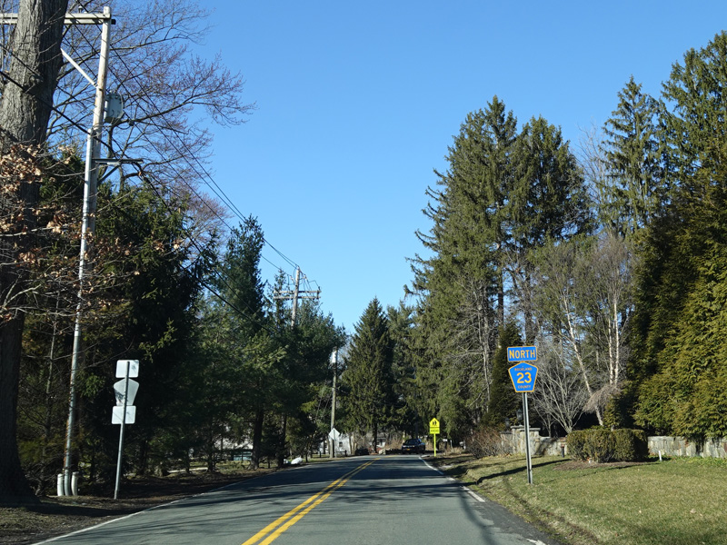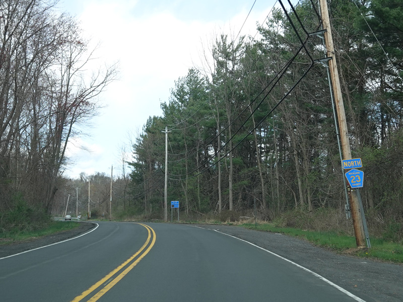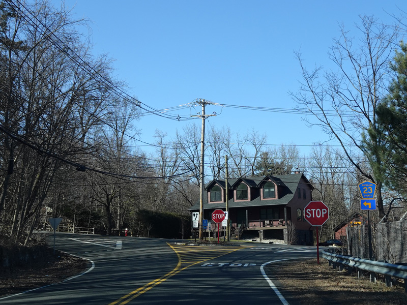 Blue Hill Road ends at a stop sign at CR 26. Turn right onto Convent Road to go east. Turn left onto Sickletown Road to go west and to stay on CR 23.