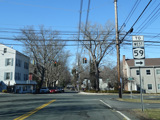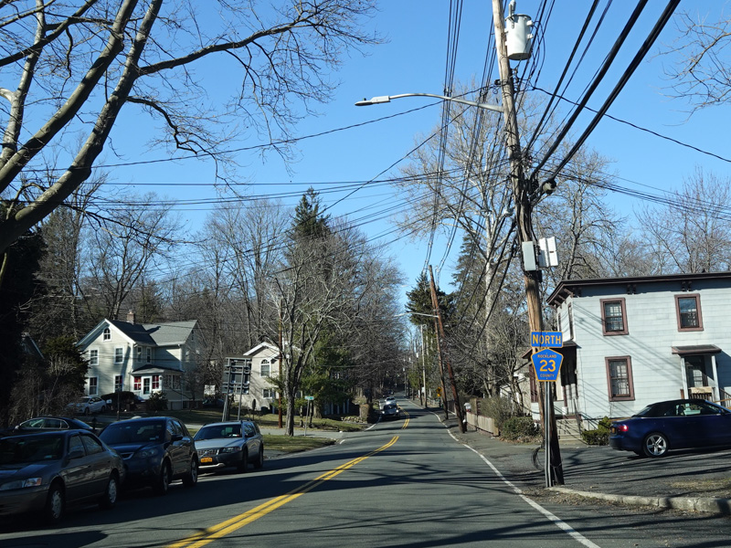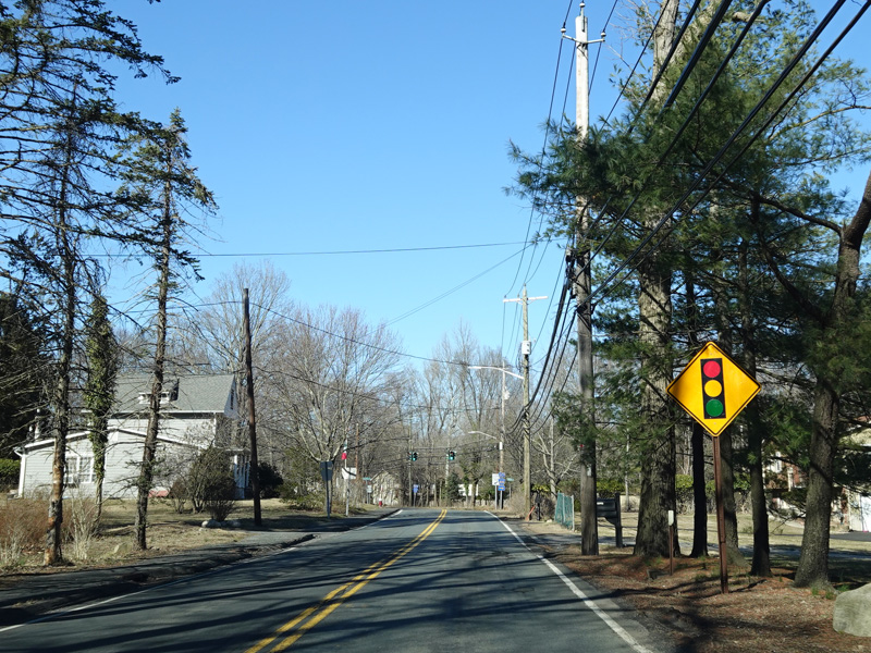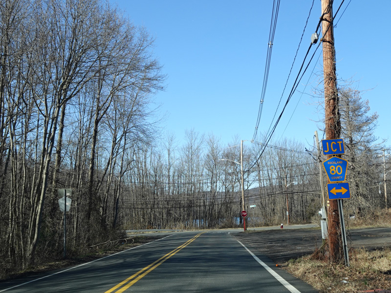 There is a traffic light at NY 304. Turn right to go north or left to go south. There is a truck route sign here but no signage giving the route number.