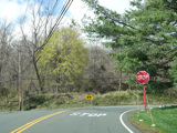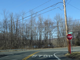 There is a stop sign at Blauvelt Road, which begins to the left. Turn right to stay on Sickletown Road.