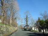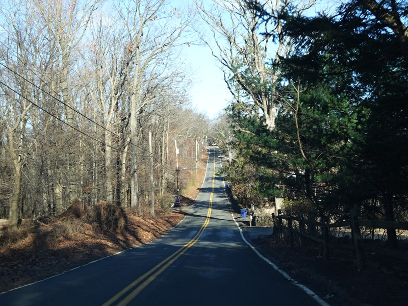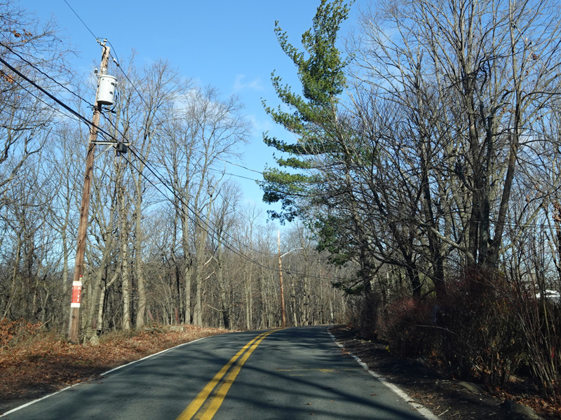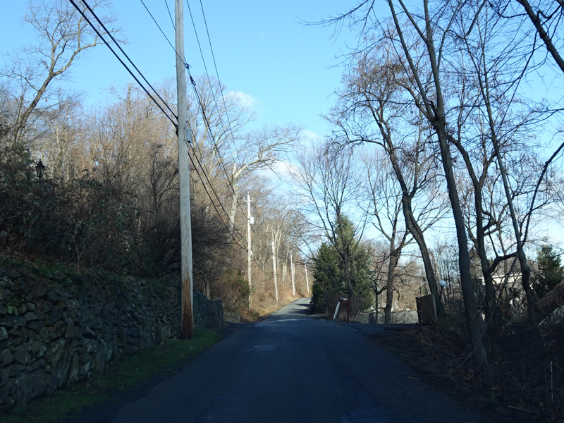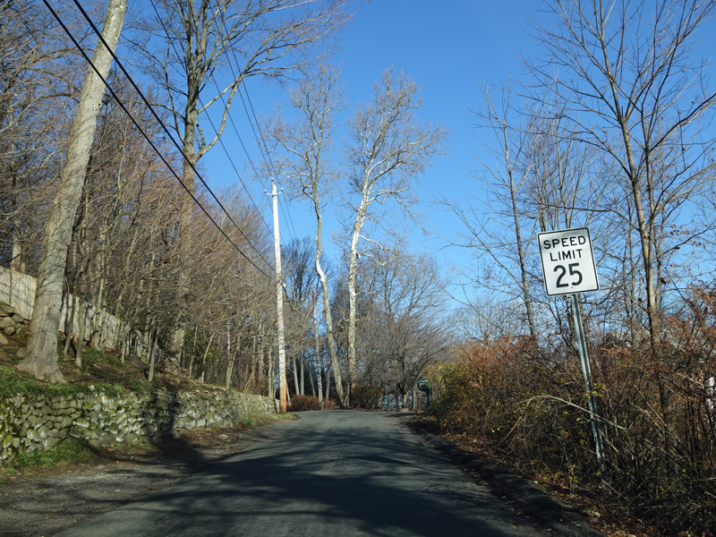Tweed Boulevard begins at Hillside Avenue (US 9W) and runs north up the cliff on the east side of Clausland Mountain. The road is very narrow here, and there are no pavement markings. Yes, this is actually a signed county route despite being substandard in these ways.