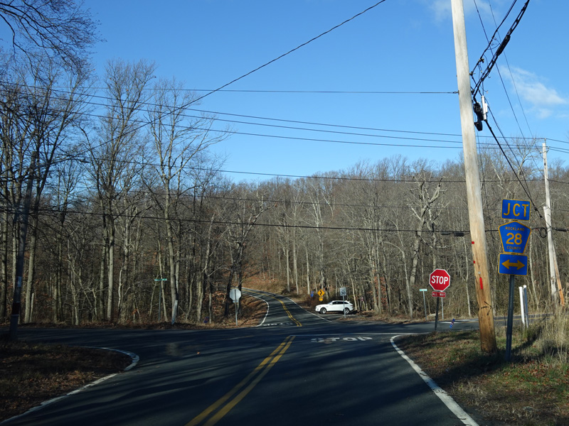 There is a stop sign at Clausland Mountain Road (CR 28). Turn right to go east or left to go west.