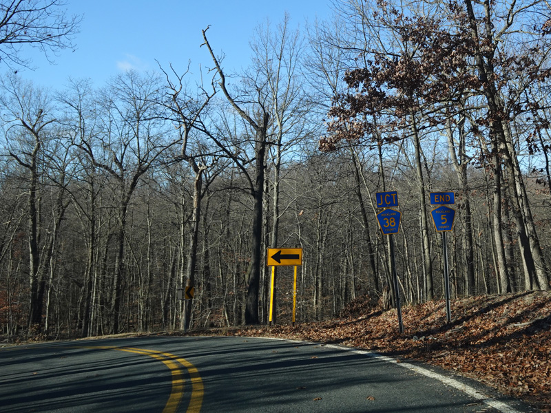 Tweed Boulevard ends at a stop sign at Bradley Hill Road (CR 38).