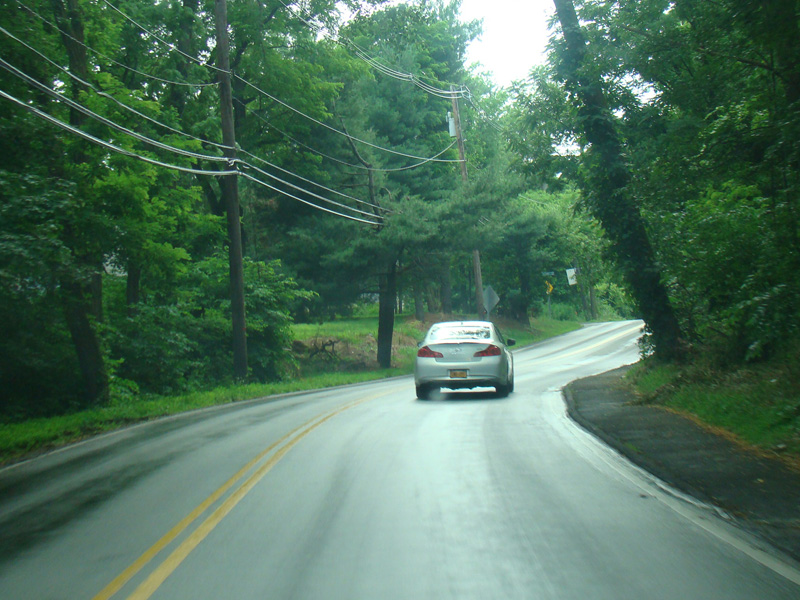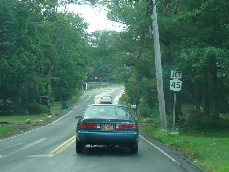 There is a traffic light at NY 45. Turn right onto South Main Street to go north or left onto Chestnut Ridge Road to go south.