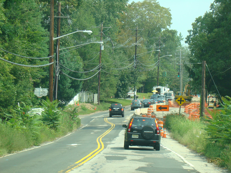 These pictures show New Hempstead Road as it appeared while construction work was in progress to rehabilitate the road. The pavement is in much better condition today, and most of the signs have been replaced.