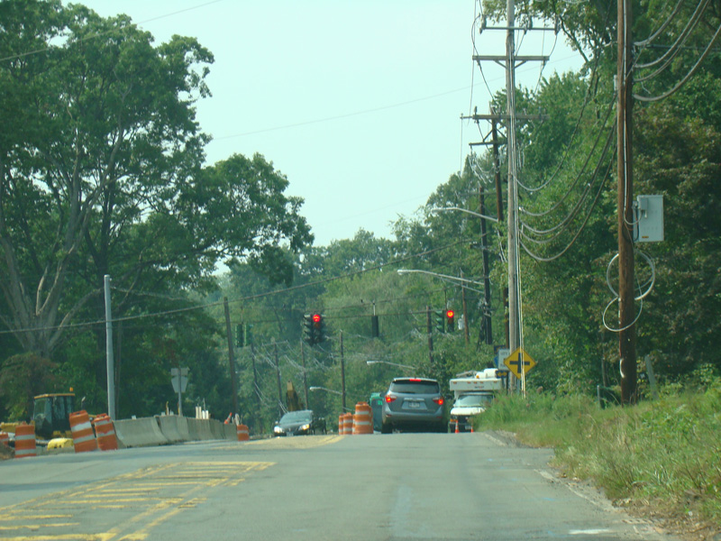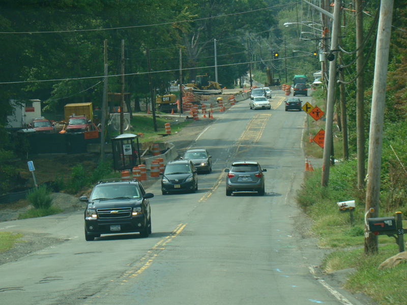 These pictures show New Hempstead Road as it appeared while construction was in progress to rehabilitate the road. The pavement is in much better condition today, and most of the signs have been replaced.