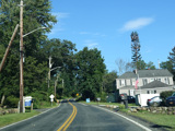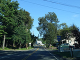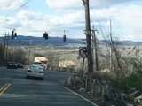 Haverstraw Road ends at a traffic light at Conger Avenue (US 9W). The Hudson River is visible straight ahead. All vehicles must bear left to go north on US 9W. Right turns are prohibited here.