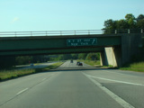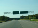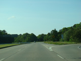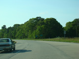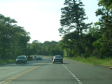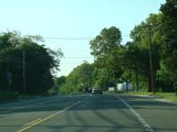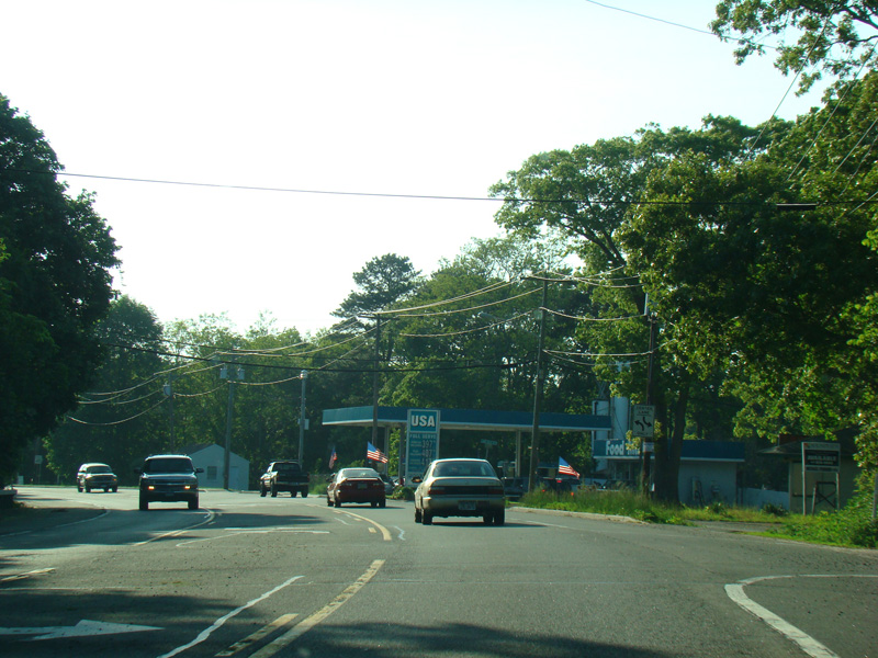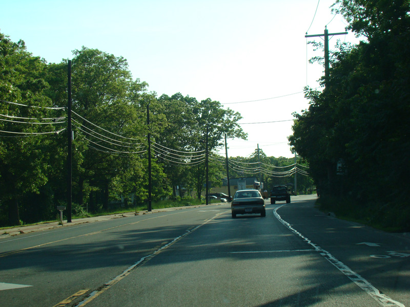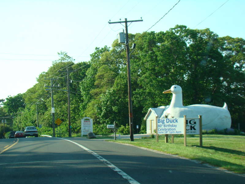 The divider ends, and Riverhead-Hampton Bays Road narrows down to two lanes and curves to the northwest. The Big Duck is on the right along this section.