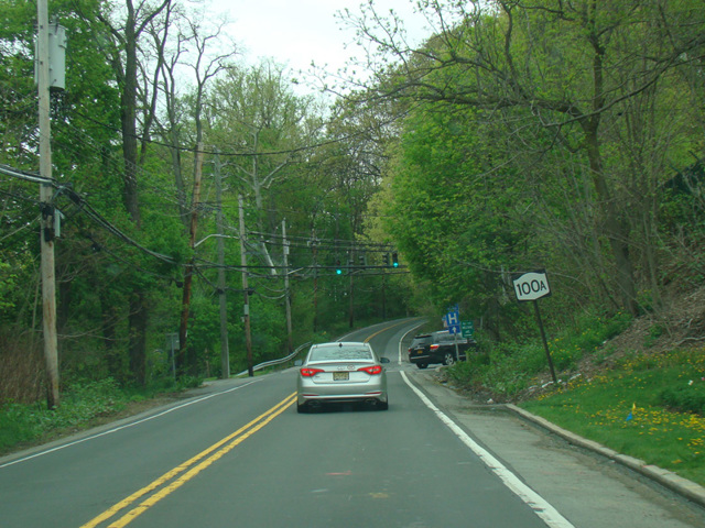 NY 100A is a loop off of NY 100 that bypasses the section in the downtown area of White Plains. It begins at Central Park Avenue (NY 100) in Hartsdale and runs to Elmsford, where there are grade-separated interchanges with Tarrytown Road (NY 119) and the Cross Westchester Expressway (I-287). Just north of the expressway, it changes names from West Hartsdale Avenue to Knollwood Road. It continues north to Valhalla, where it ends at NY 100 and NY 100C. The entire length is a two-lane undivided road.