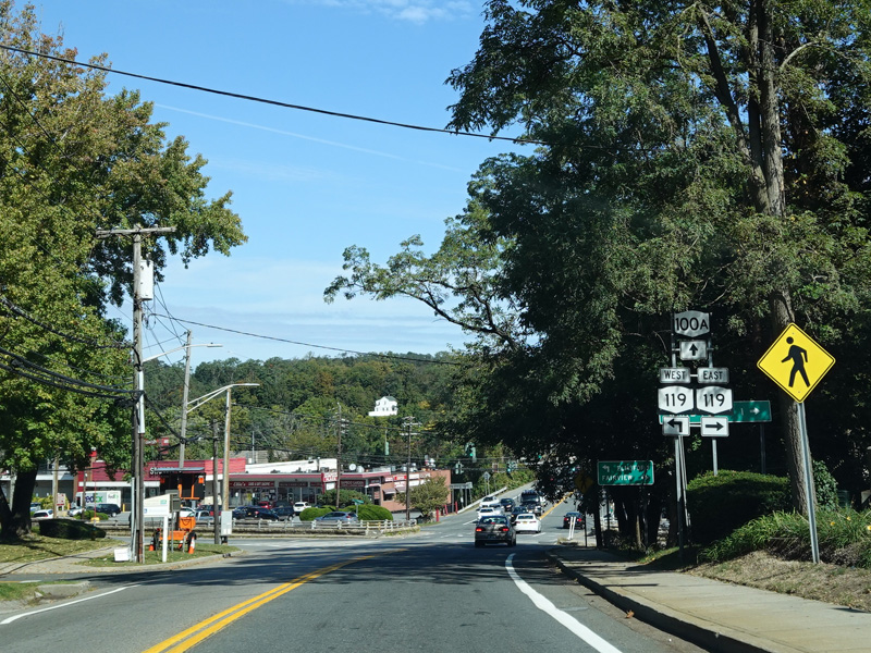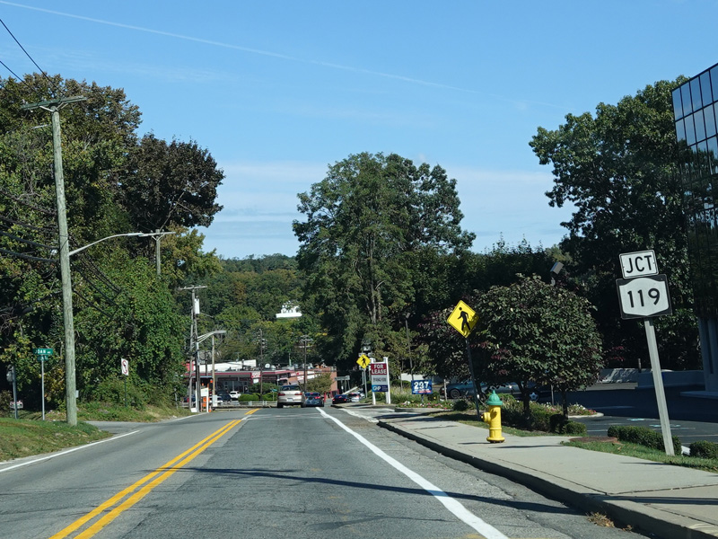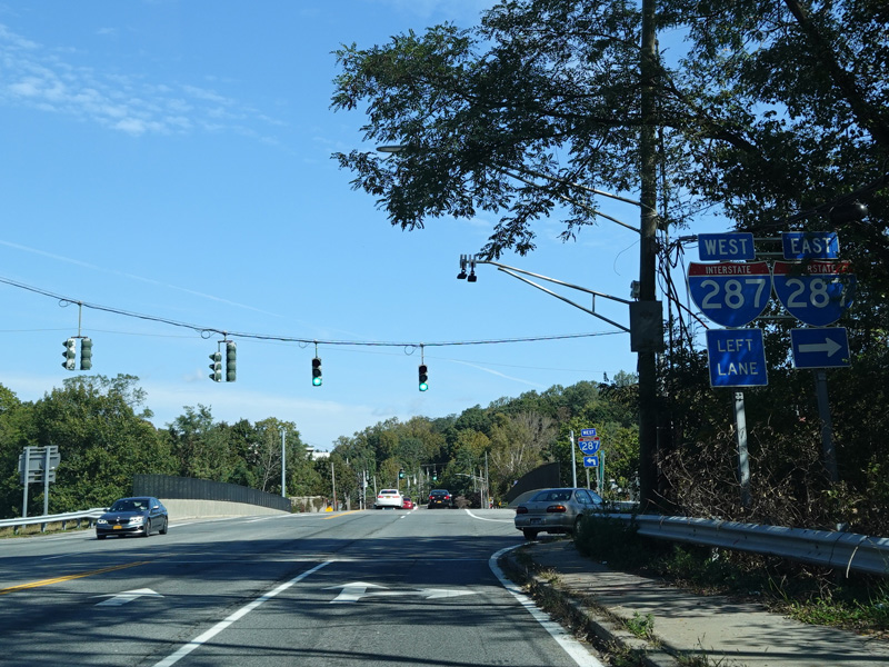 There is a grade-separated interchange with Tarrytown Road (NY 119). Turn right at the first traffic light to go east or left at the second traffic light to go west.