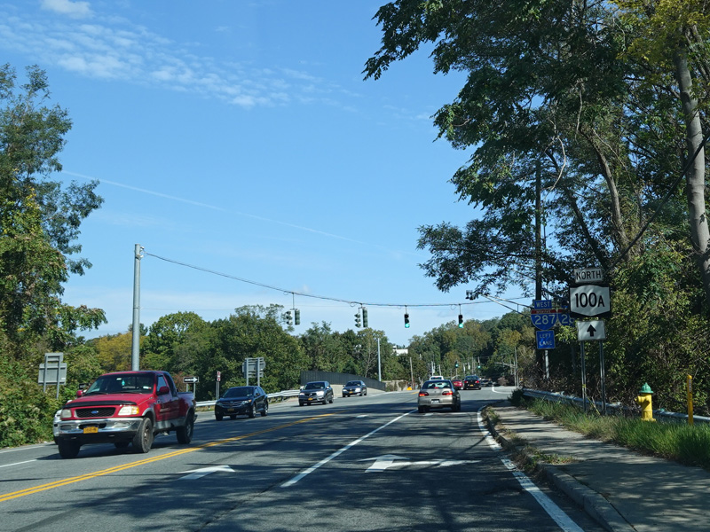 West Hartsdale Avenue ends at a traffic light at Dobbs Ferry Road (NY 100B). Turn right to go east or left to go west. Continue straight ahead onto Knollwood Road to stay on NY 100A.