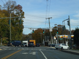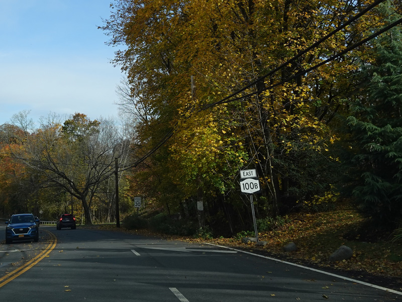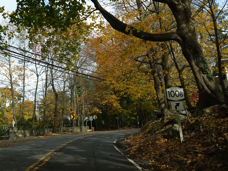 There is a pair of traffic lights. At the second light, turn left onto Knollwood Road to go north on NY 100A or right onto West Hartsdale Avenue to go south.