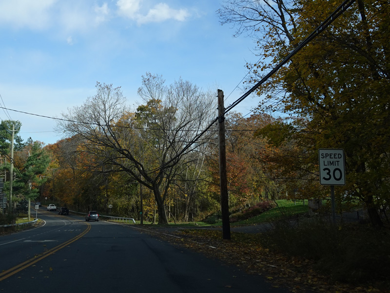 Dobbs Ferry Road begins at Saw Mill River Road (NY 9A) and runs east as a two-lane undivided road.