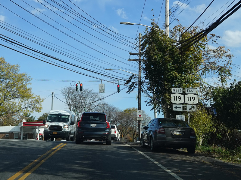 Dobbs Ferry Road ends at a traffic light at Tarrytown Road (NY 119). Turn right to go east or left to go west.