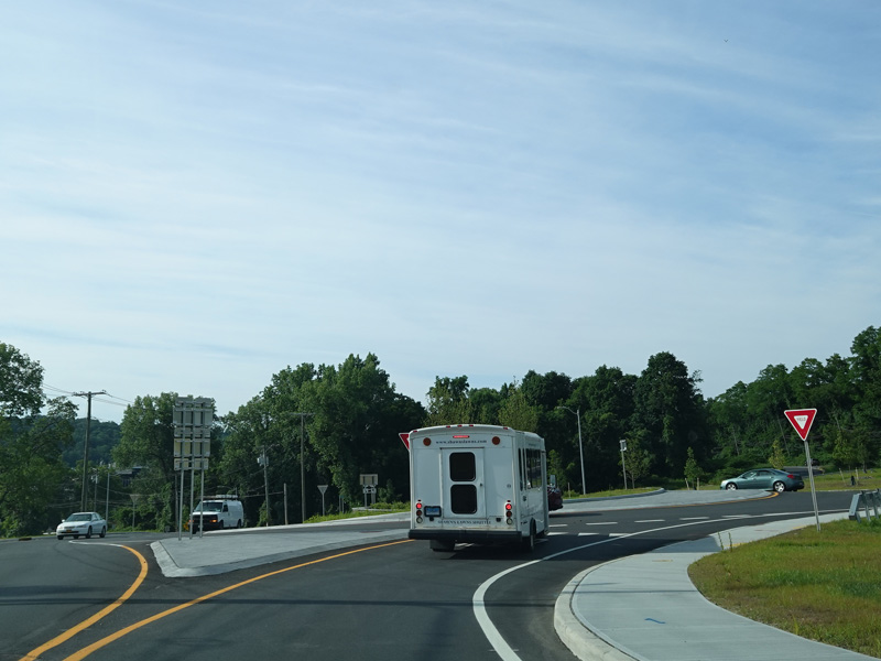 There is a roundabout at Old Saw Mill River Road (CR 303). Take the first exit to the right to stay on Grasslands Road.