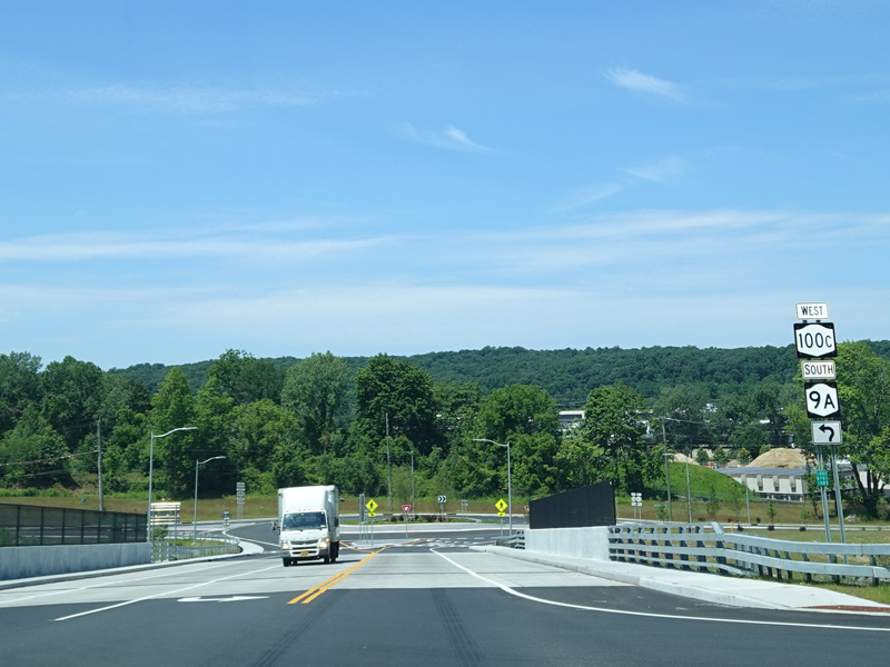 Grasslands Road continues as NY 100C as NY 100 turns off of it onto Bradhurst Avenue. Immediately, there is an interchange with the Sprain Parkway.