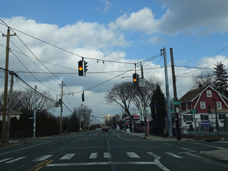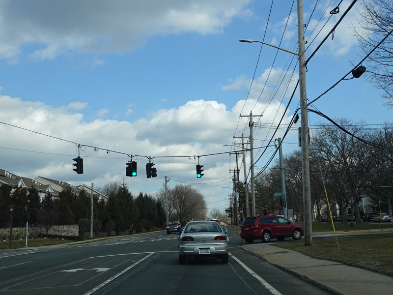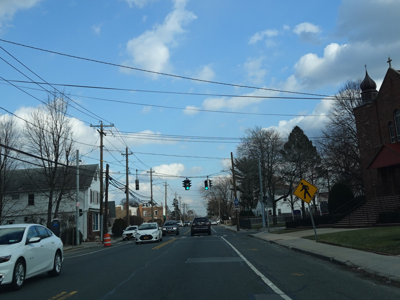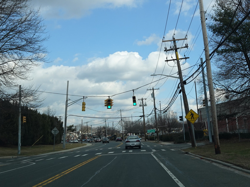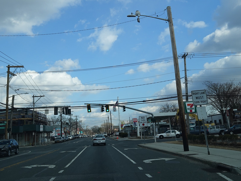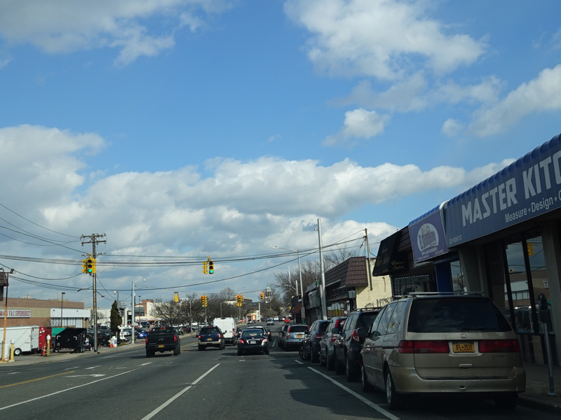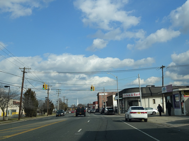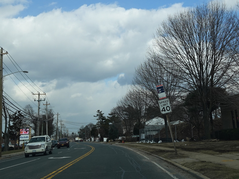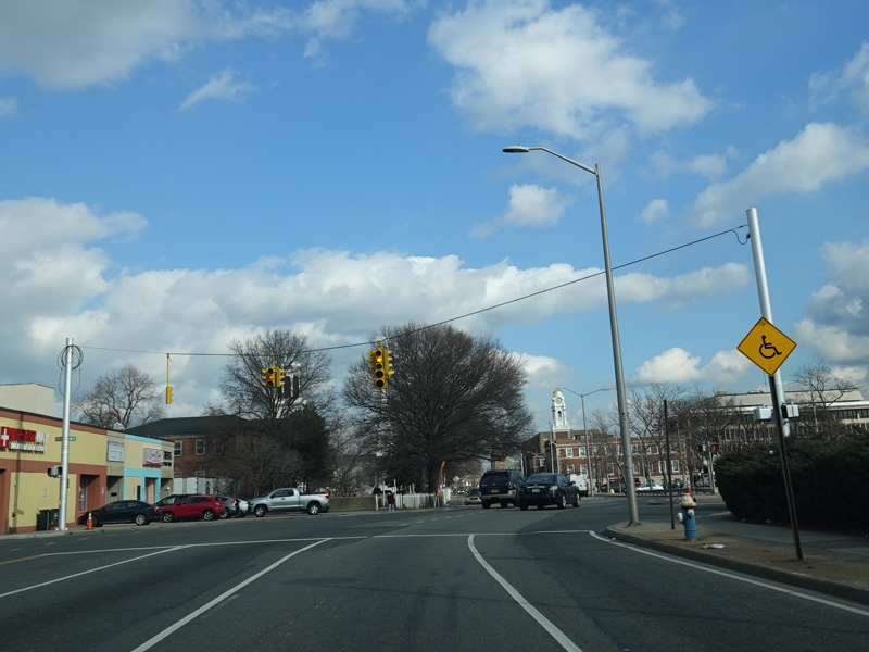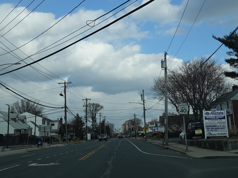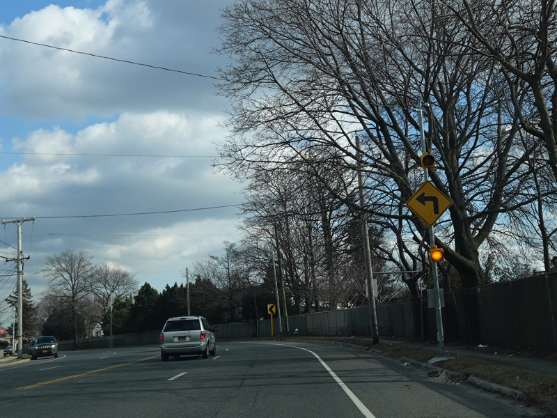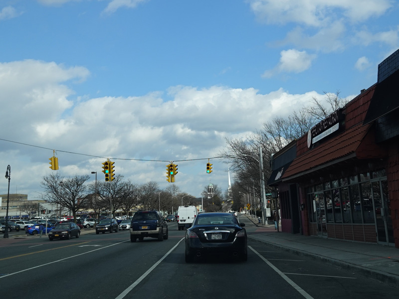 There is a traffic light at Merrick Avenue (CR 4). Turn left to go north or right to go south.