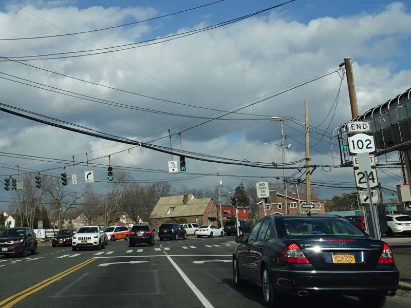 Front Street begins at Hempstead Turnpike (NY 24) in West Hempstead, just west of the Hempstead village line. The first section is locally maintained by the Nassau County Department of Public Works (NCDPW) and is designated CR 106. The NY 102 designation is unsigned along this section. Immediately, there is a traffic light at Hempstead Avenue.