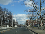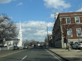 Front Street curves to the east and runs through Hempstead as a four-lane undivided road. There are traffic lights at Franklin Avenue (CR 5A), Greenwich Street (CR 7B), Washington Avenue (CR 7A), Clinton Road (CR 1), and Peninsula Boulevard (CR 2).