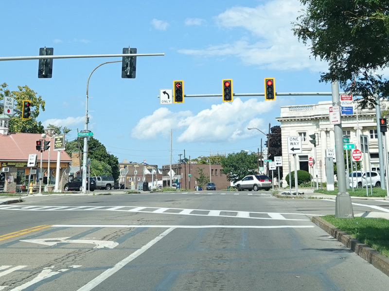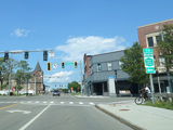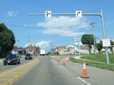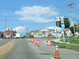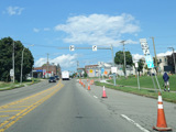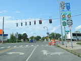 Pine Avenue (Business US 62) begins on the right at a traffic light.