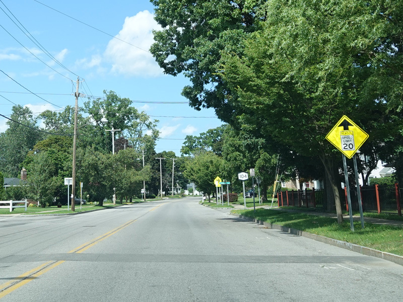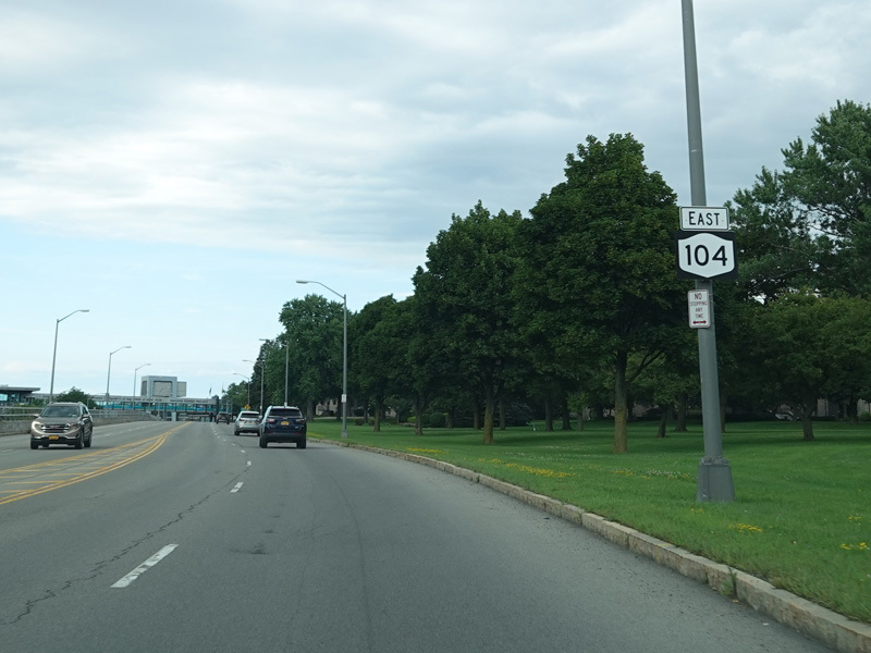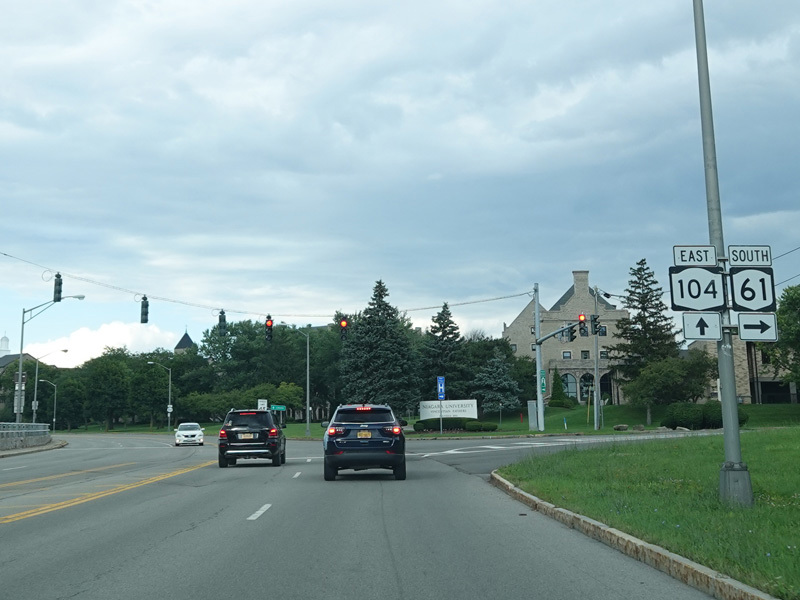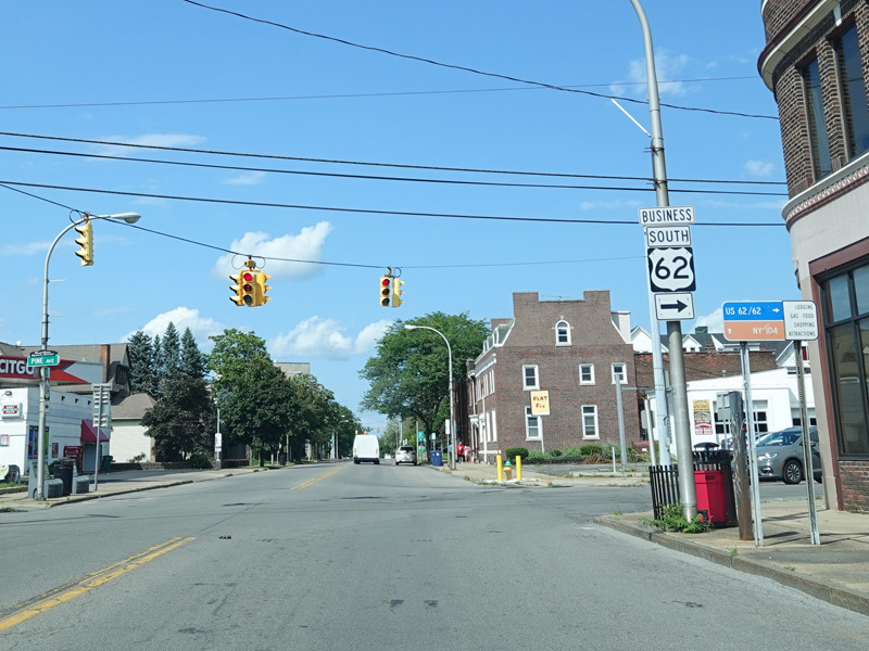 First Street in Niagara Falls become NY 104 upon crossing Niagara Street (NY 384).