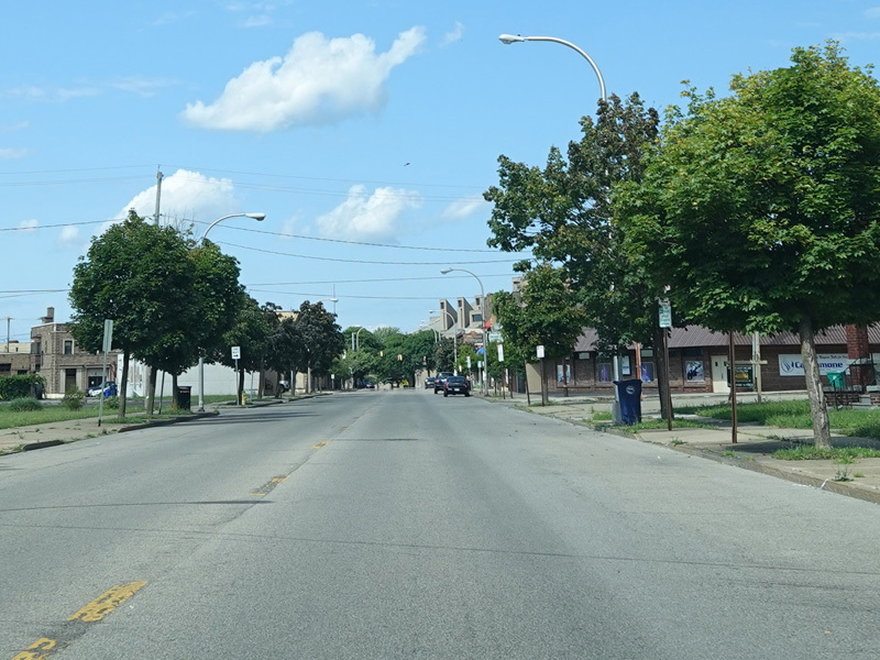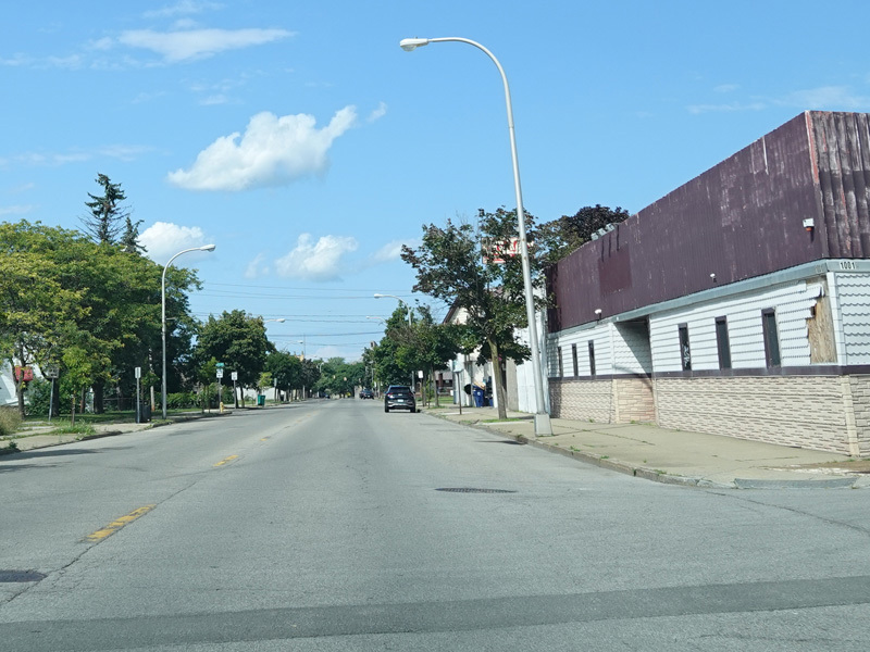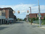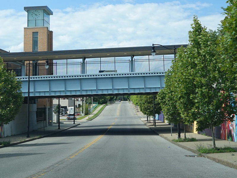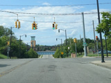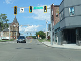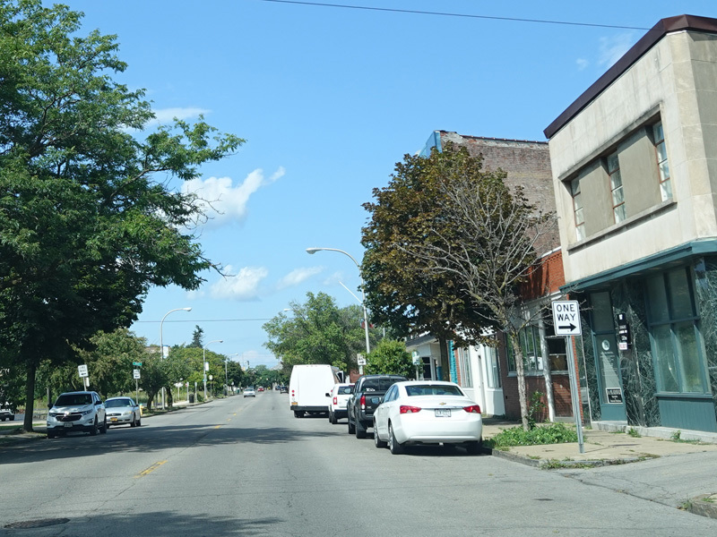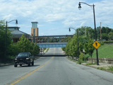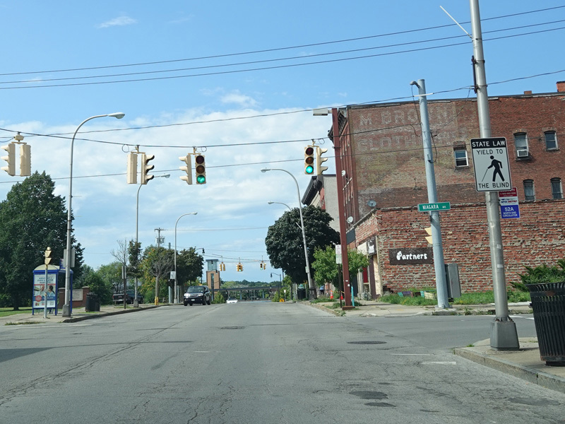 There is a railroad overpass as Main Street passes the Niagara Falls train station, right near where Amtrak crosses into Canada.