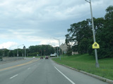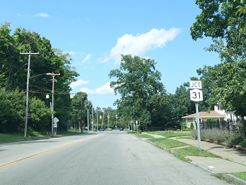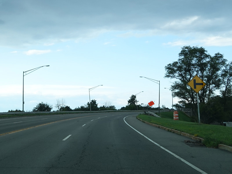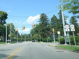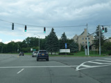 There is a traffic light at College Avenue (NY 31). The state route begins to the right.