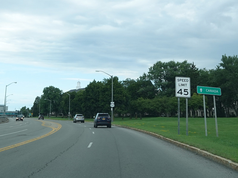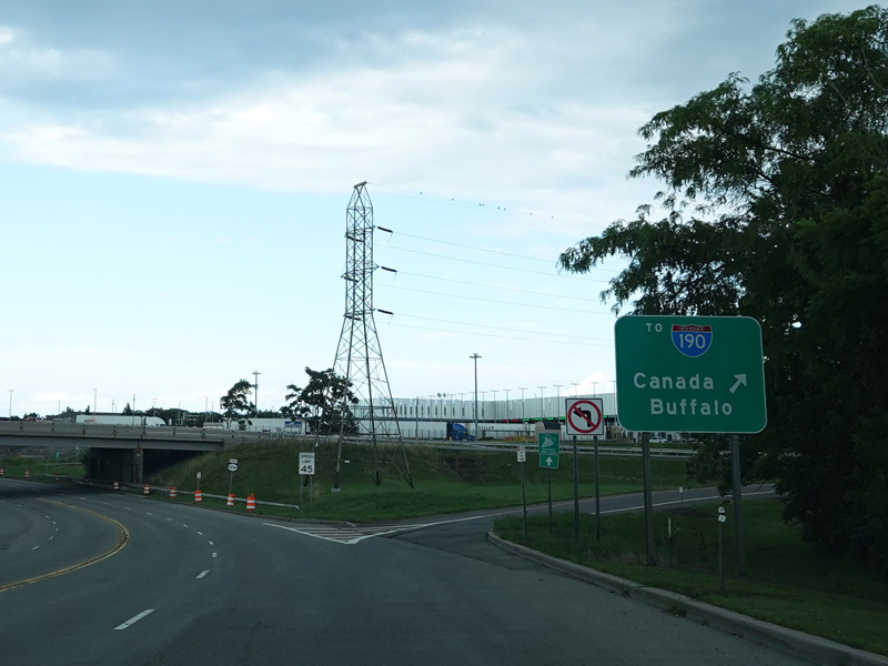 There is an interchange with the Niagara Expressway (I-190). This is the northernmost interchange before it crosses into Canada.