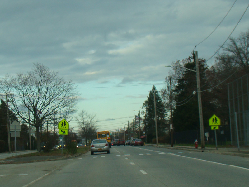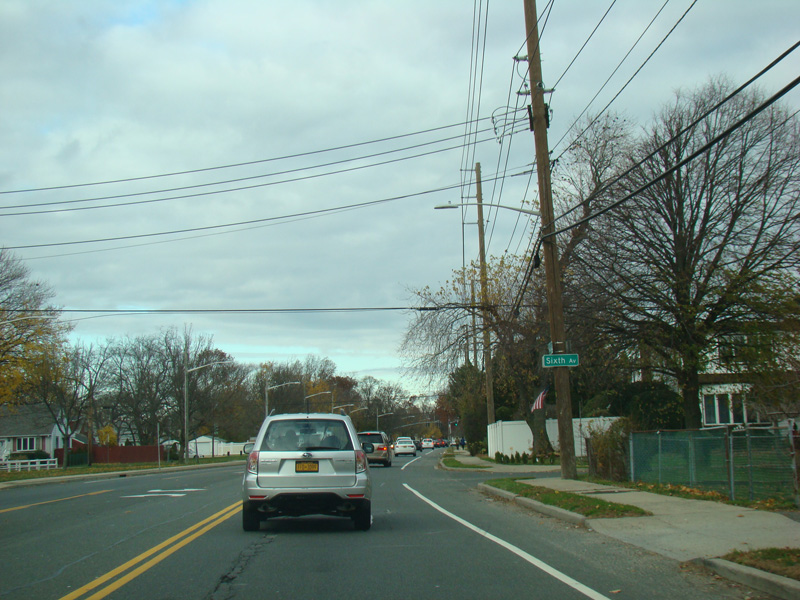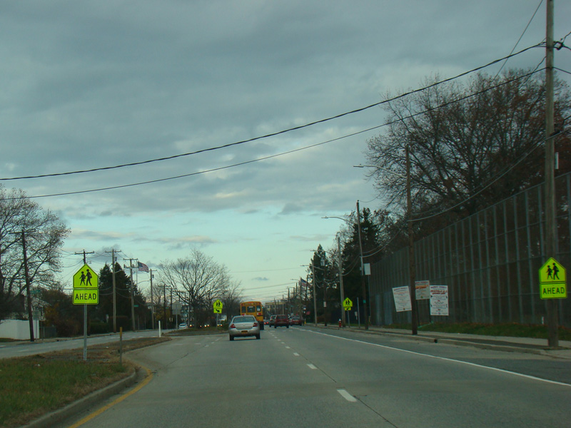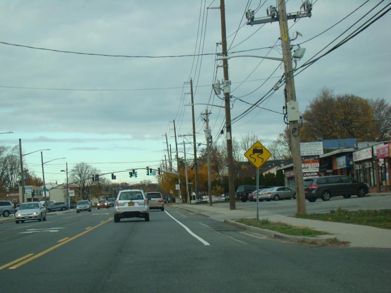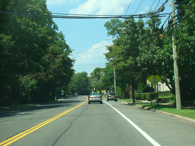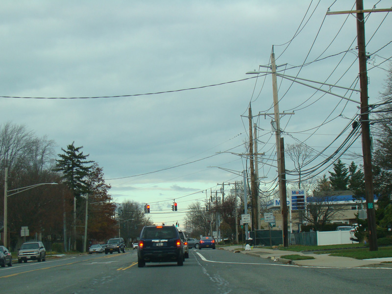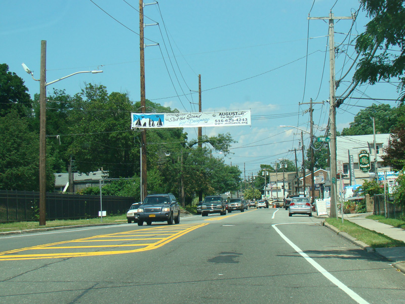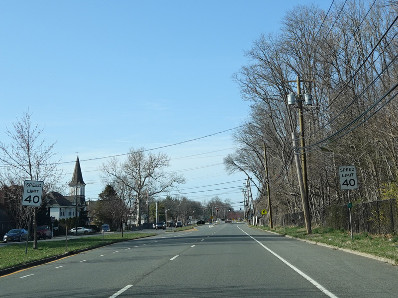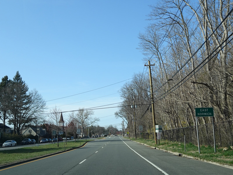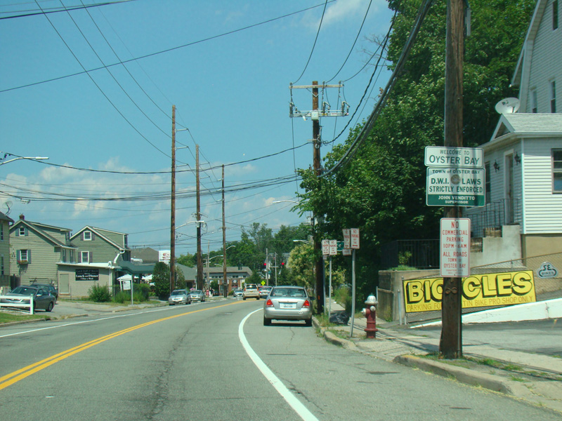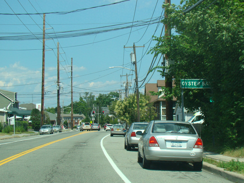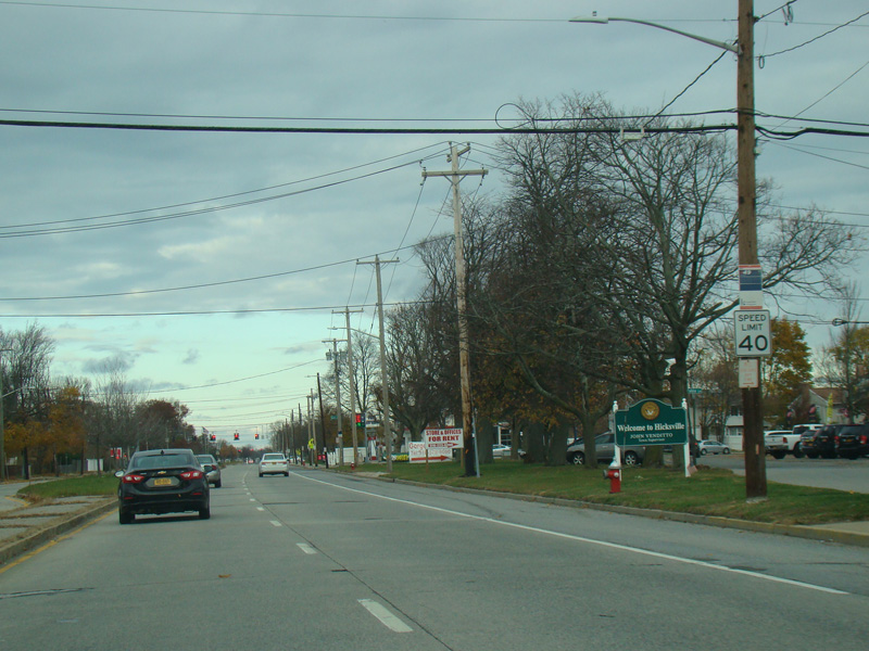 Welcome to East Norwich! The speed limit drops to 40 MPH. There is a traffic light at Northern Boulevard (NY 25A). Turn right to go east or left to go west.