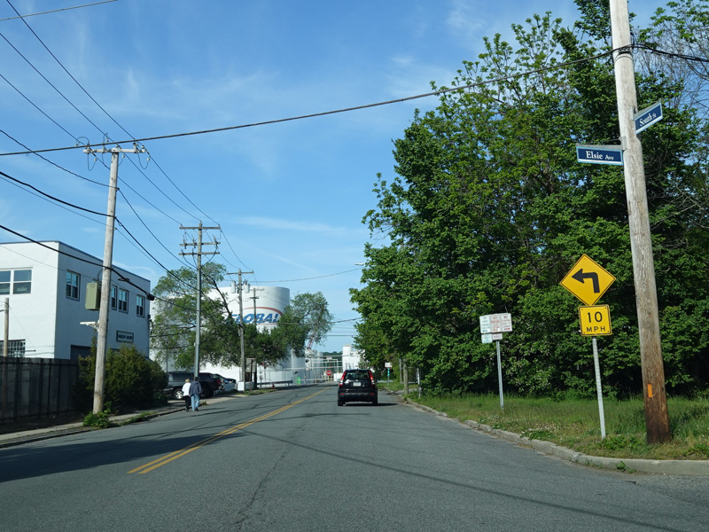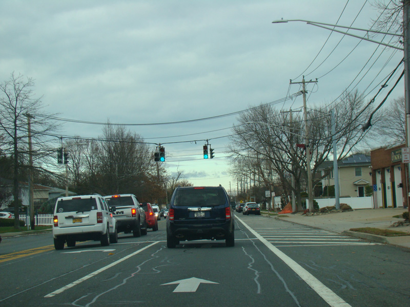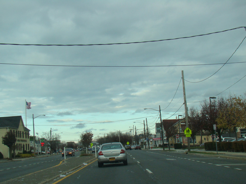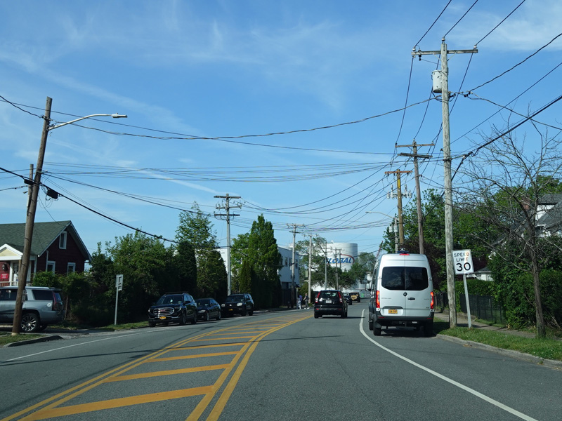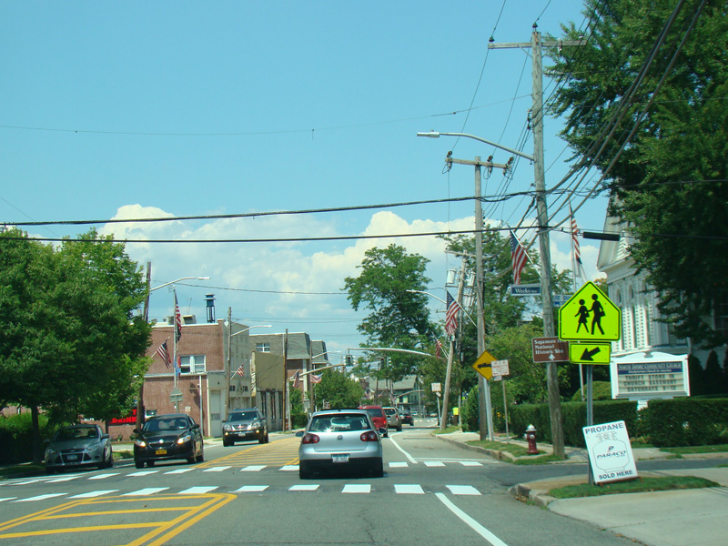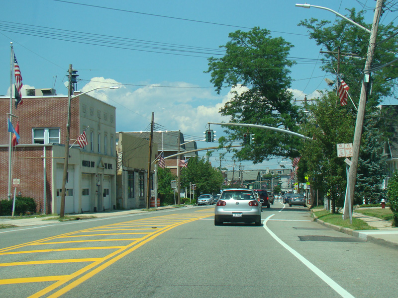 South Street ends at Bay Avenue in Oyster Bay. All vehicles are forced to turn left onto Bay Avenue.