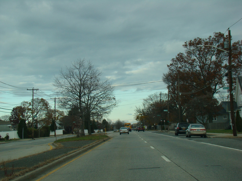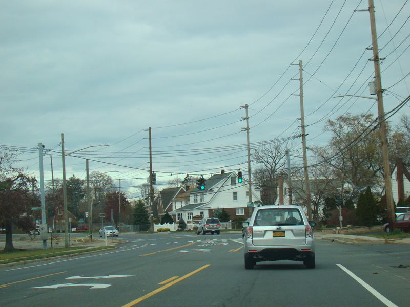 North of Hempstead Turnpike (NY 24), Newbridge Road is a four-lane divided road. There are traffic lights at Old Westbury Road, North Bellmore Road, Salisbury Park Drive, and Carnation Road.