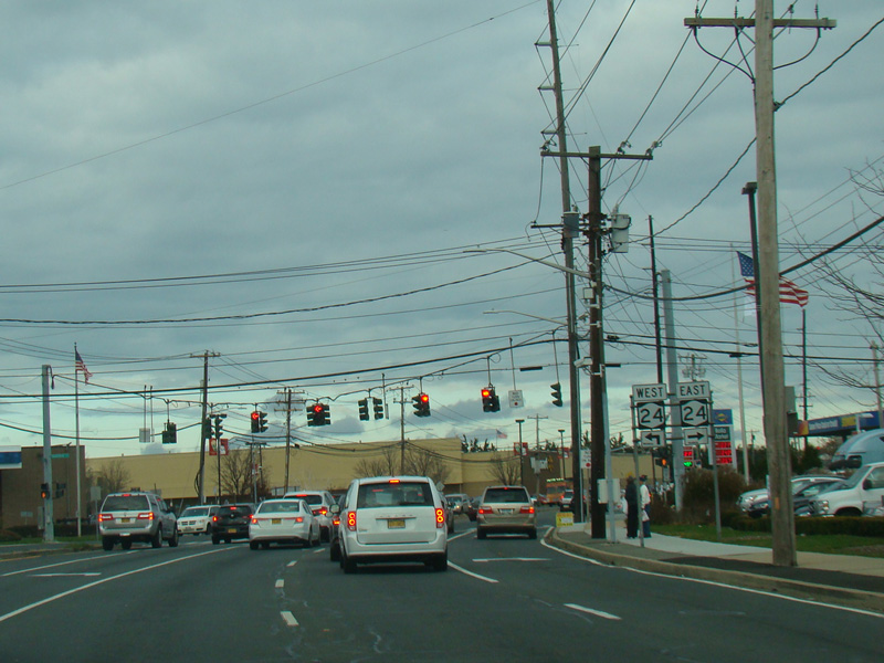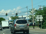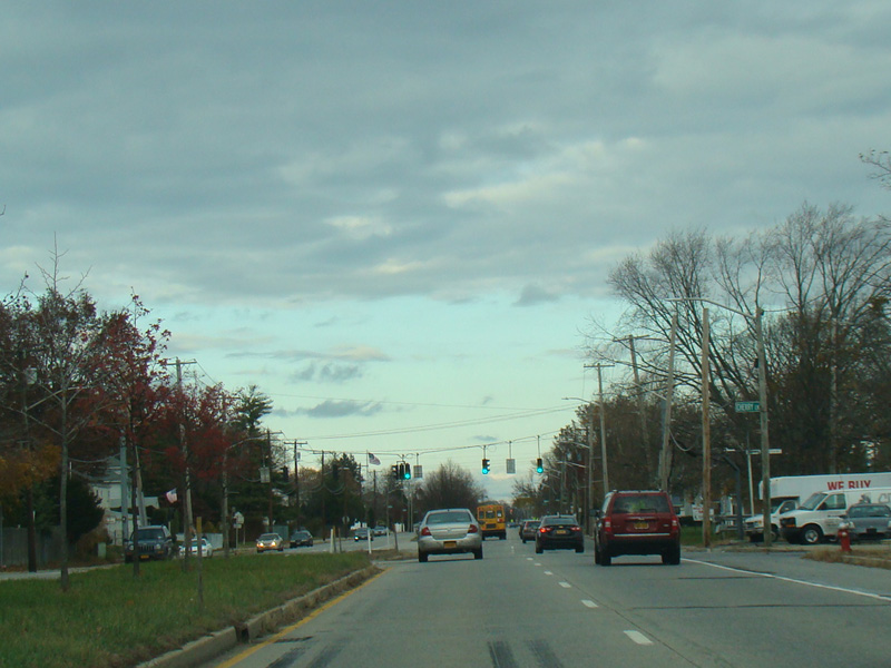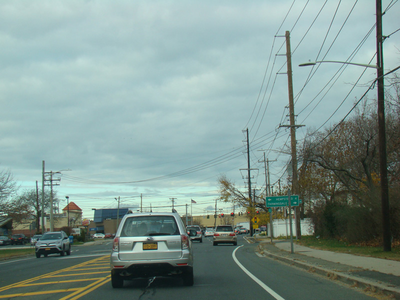 There is a traffic light at Hempstead Turnpike (NY 24). Turn right to go east or left to go west.