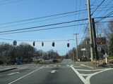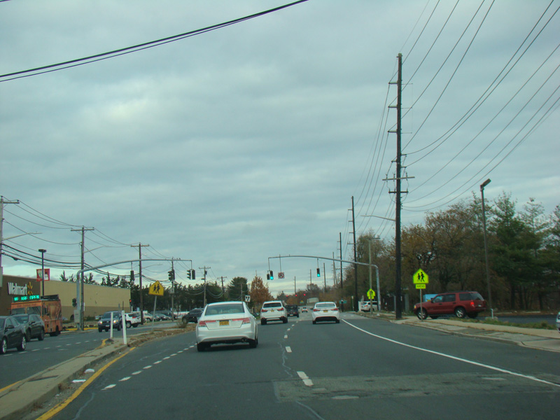 There is a traffic light at Old Country Road (CR 25). Turn right to go east or left to go west.