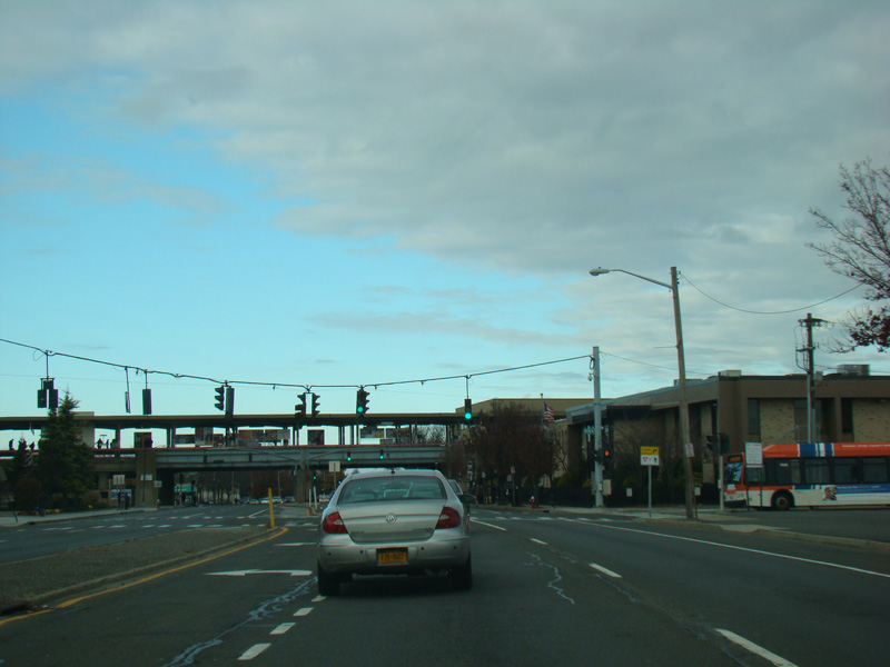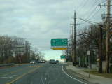 Newbridge Road takes on the NY 106 designation at Jerusalem Avenue (NY 105) in North Bellmore. Immediately, there is an interchange with the Southern Parkway.
