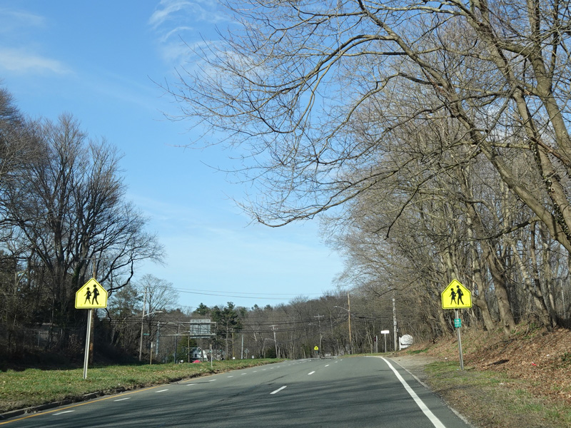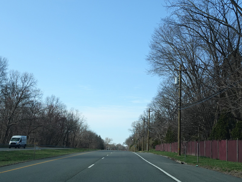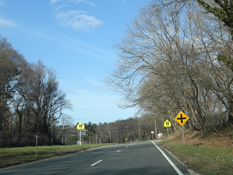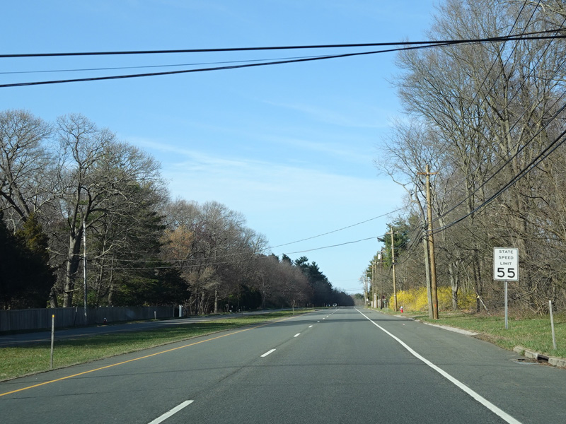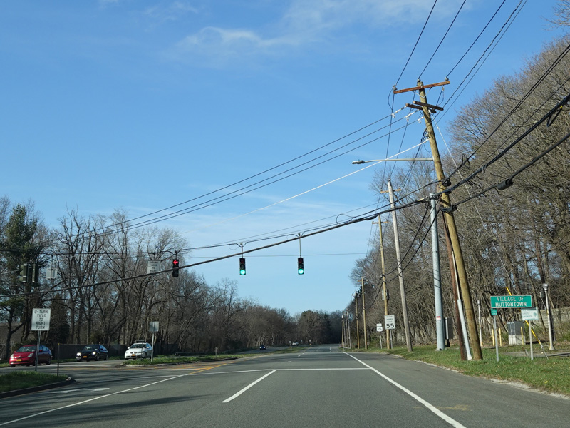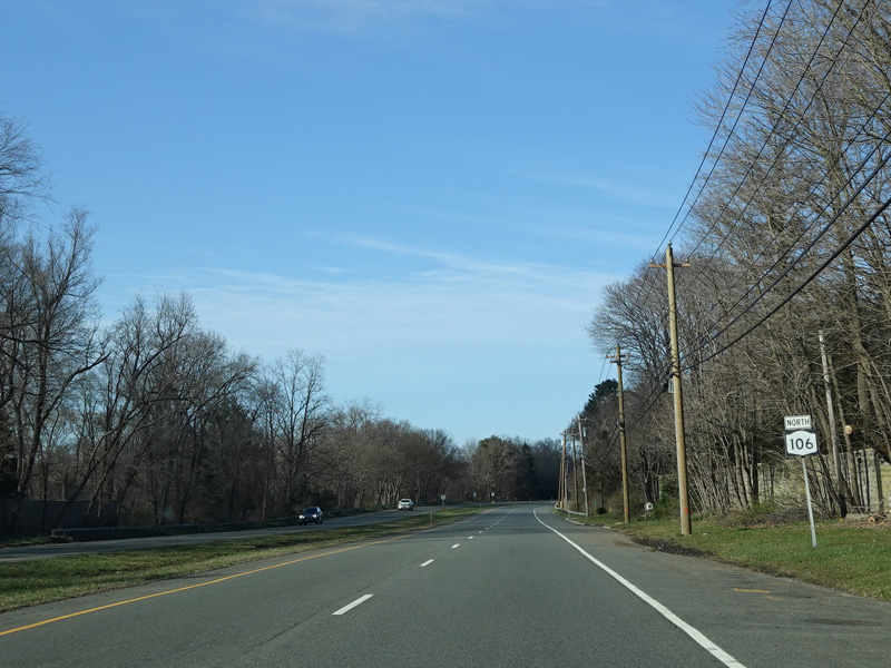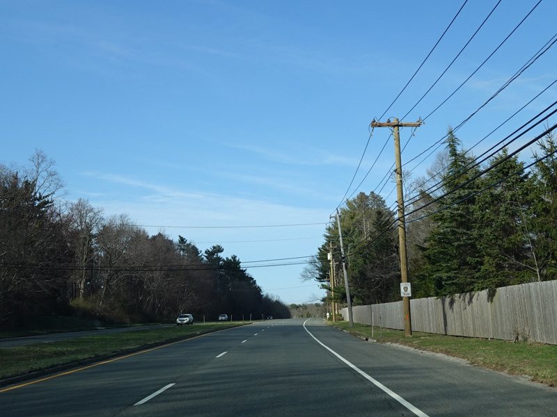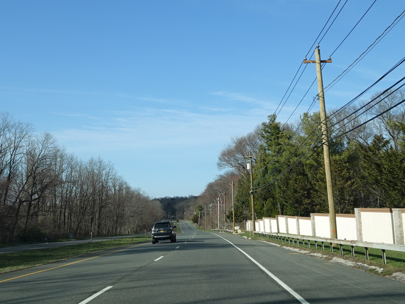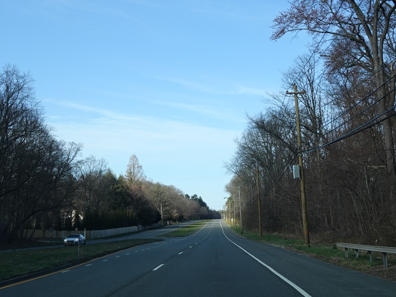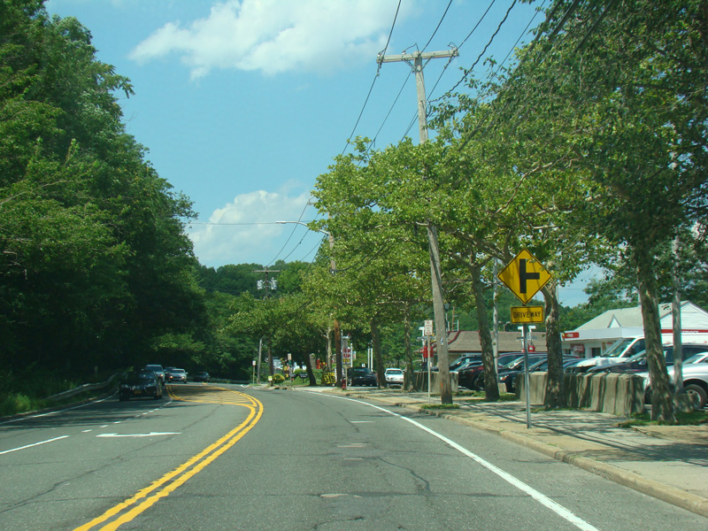 The divider ends, and the road narrows down to two lanes. Here, NY 106 is called Pine Hollow Road.